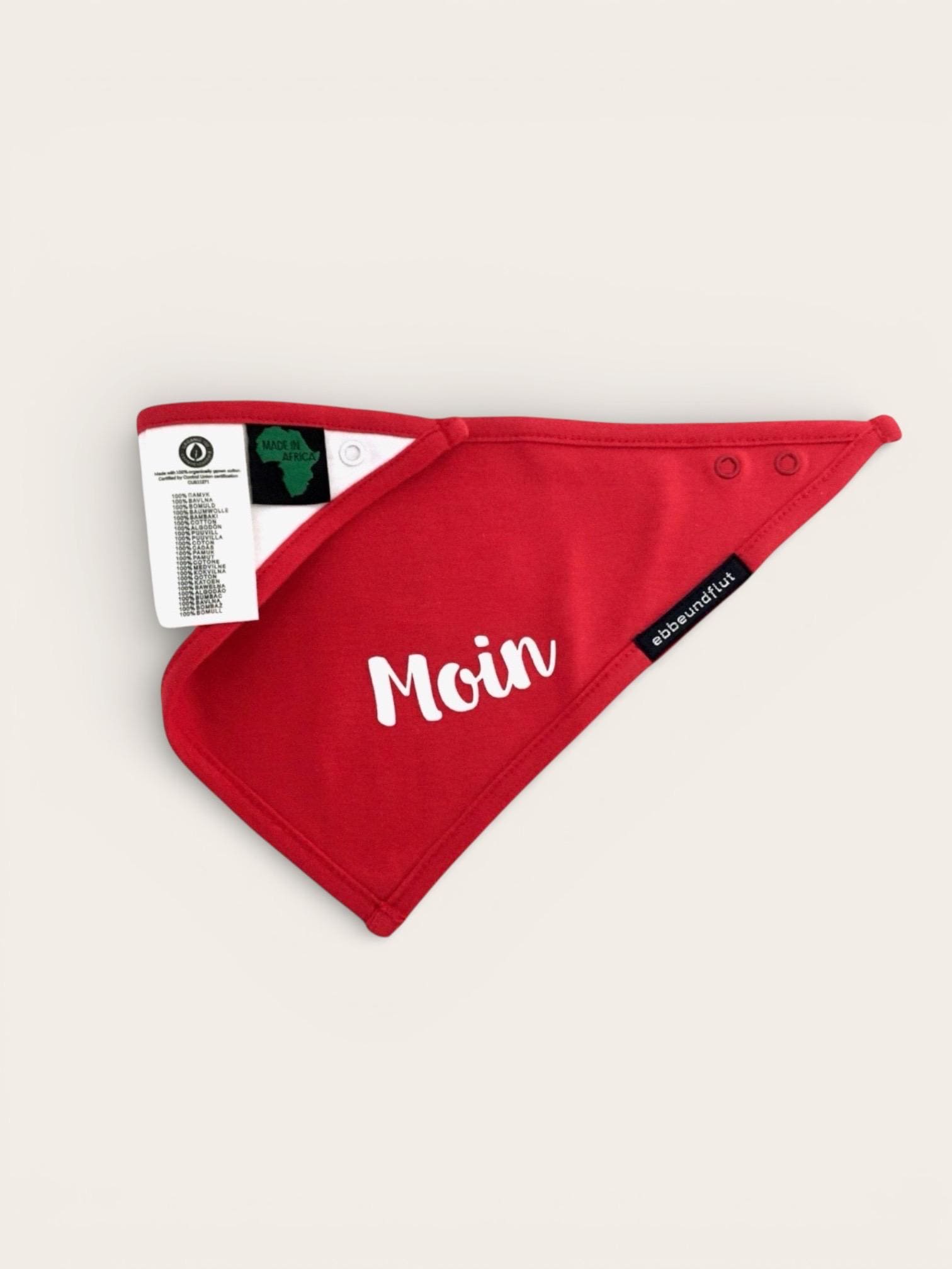 Nautical baby scarf "Moin" in red from our FAIR TRADE HAMBURG collection. The scarf is double-layered for extra durability and absorbency. The width can be adjusted using an adjustable snap fastener on the back.