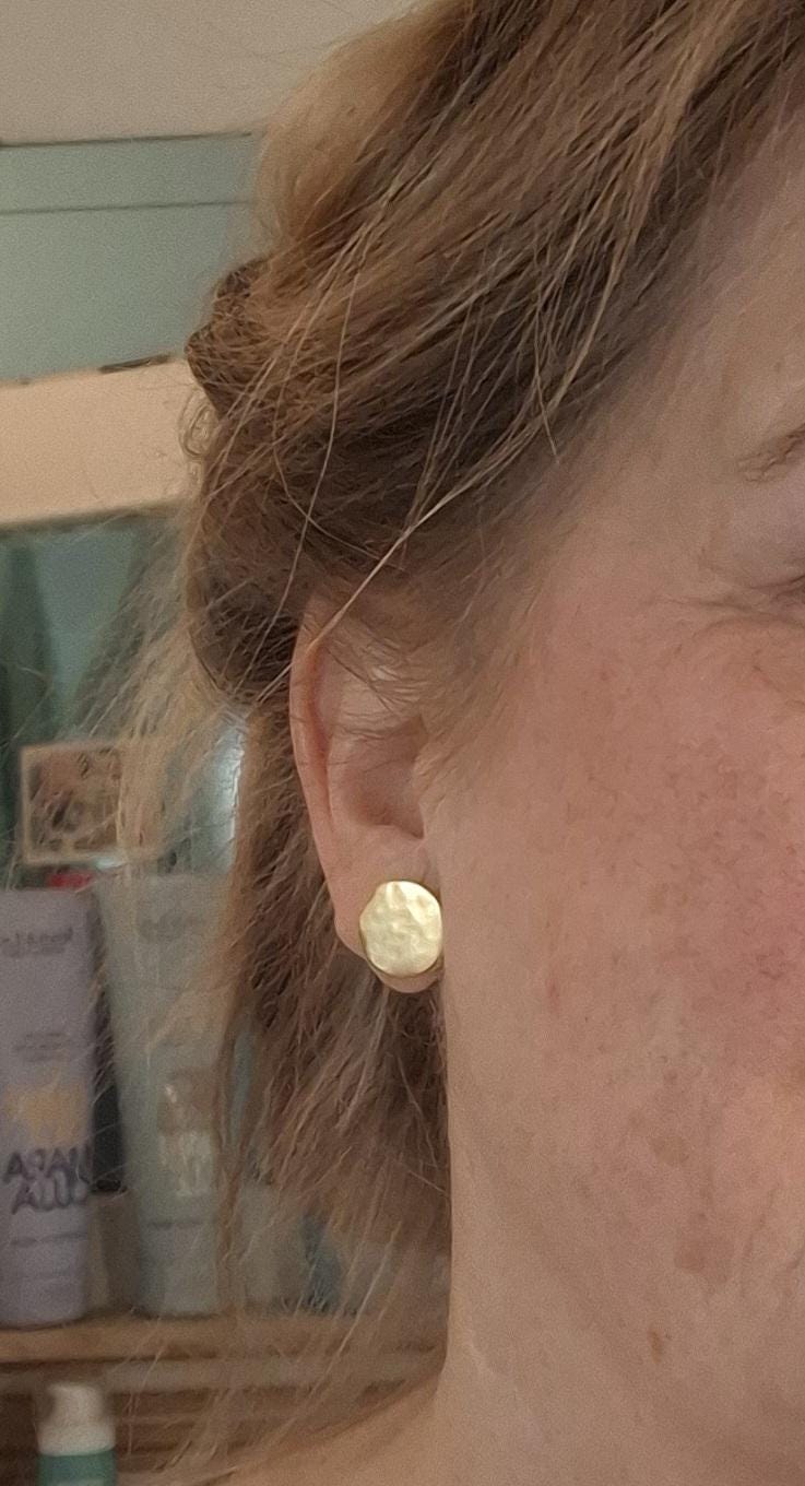 These beautiful Baltic Sea Gold stud earrings with a hammered finish sparkle in subtle matte gold and add a special touch to any outfit. They make a lovely jewelry gift for yourself, for your best friend, as a birthday present, or as a gift for your daughter or granddaughter.