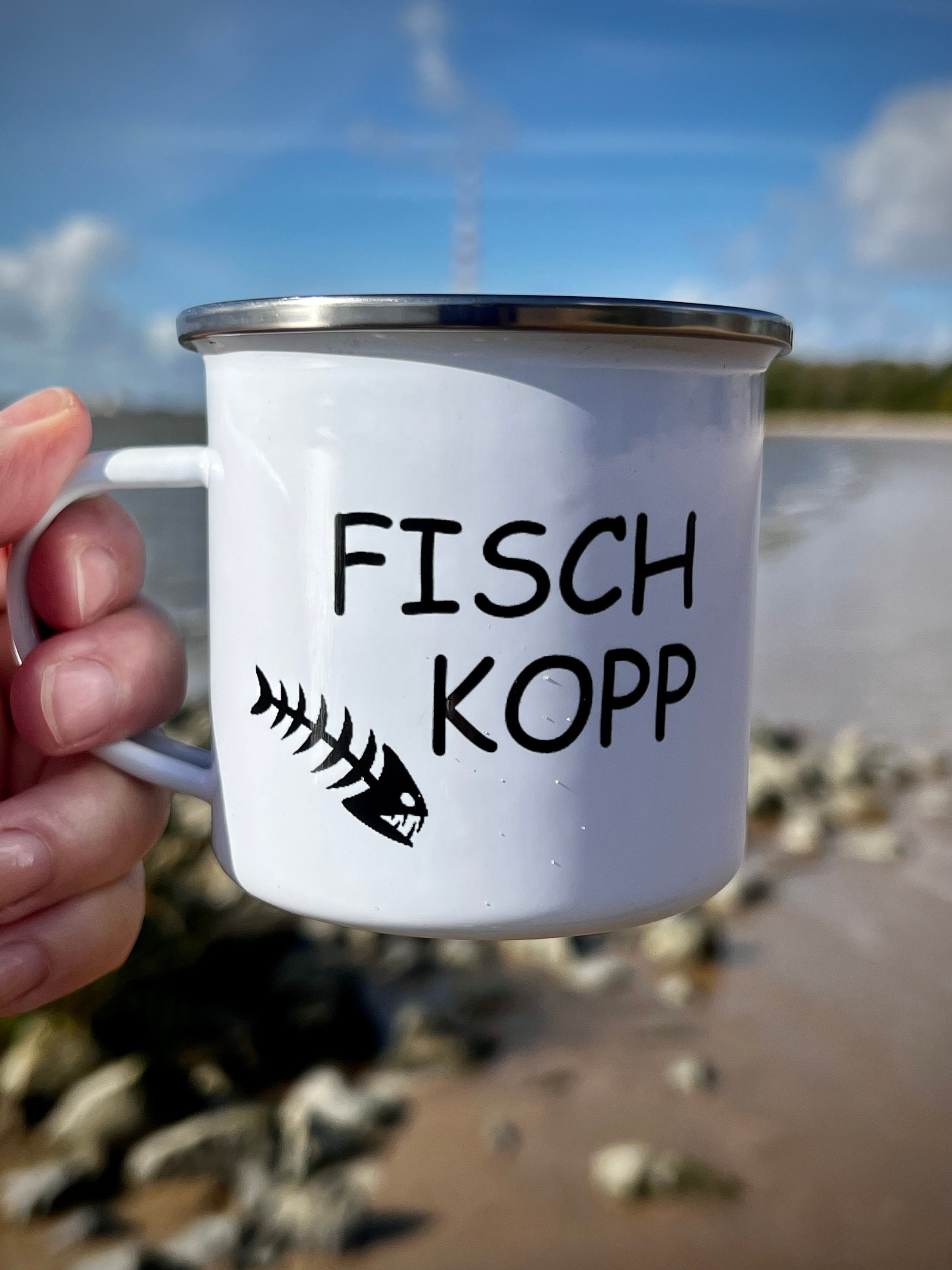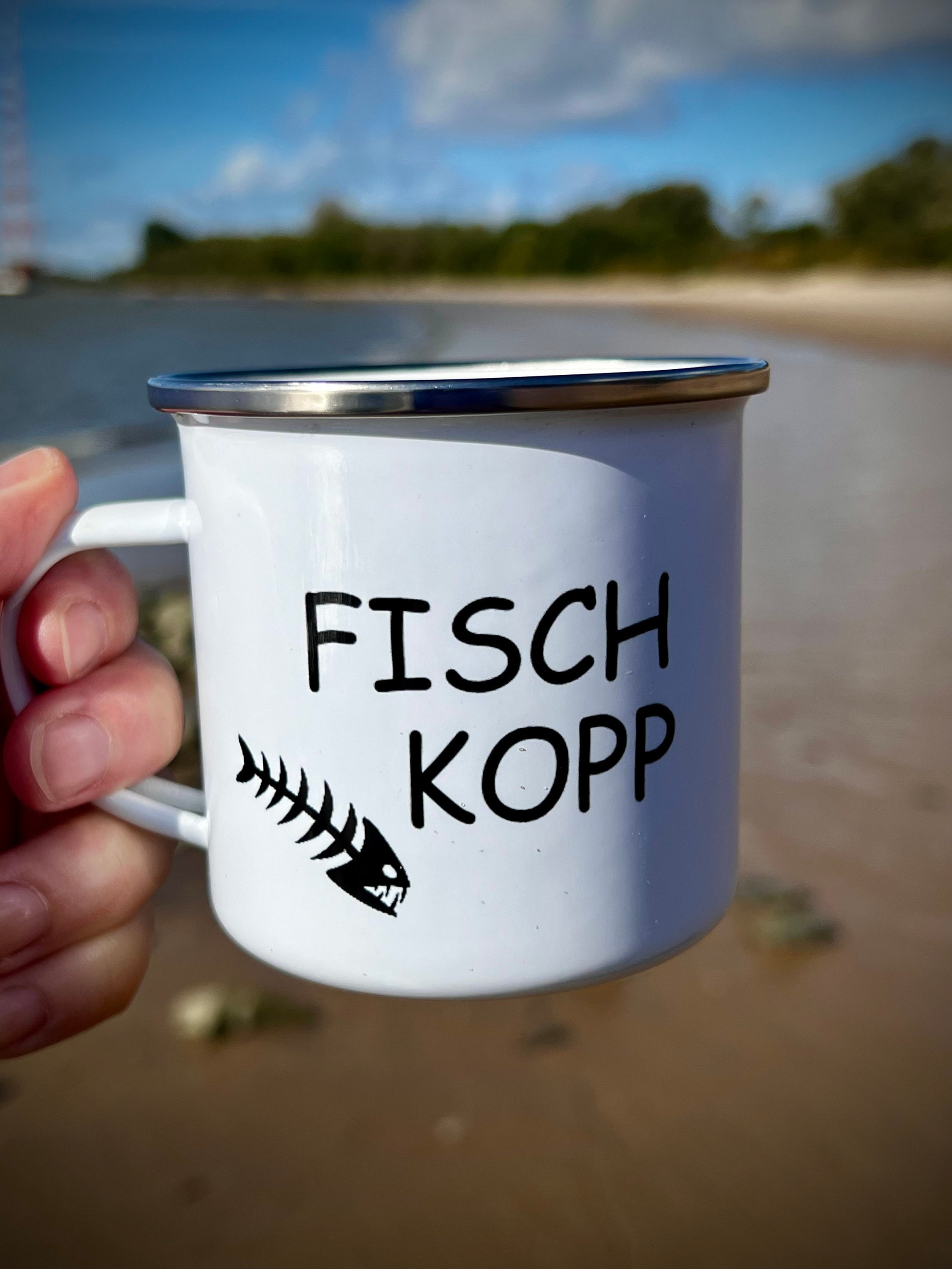 Ebb and flow enamel mug Fischkopp - Maritime North Hamburg home port ship anchor Baltic Sea beach coast gift mug motif printed mug, Fischkopp, Hamburg, East Frisia, North German, Low German, East Frisian Islands, camping, picnic, ebb and flow, ebb and flow, Hamburg, Bremen, North Frisia, East Frisia, Hamburg, Bremen, North Frisia, East Frisia, North German coast, coastal child, north German coast, coastal child, Borkum, Sylt Amrum, Langeoog, Föhr, Juist,
