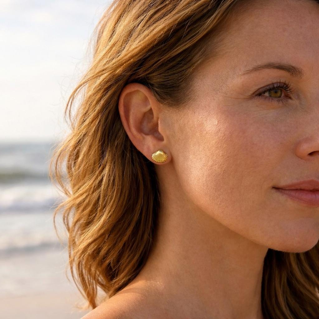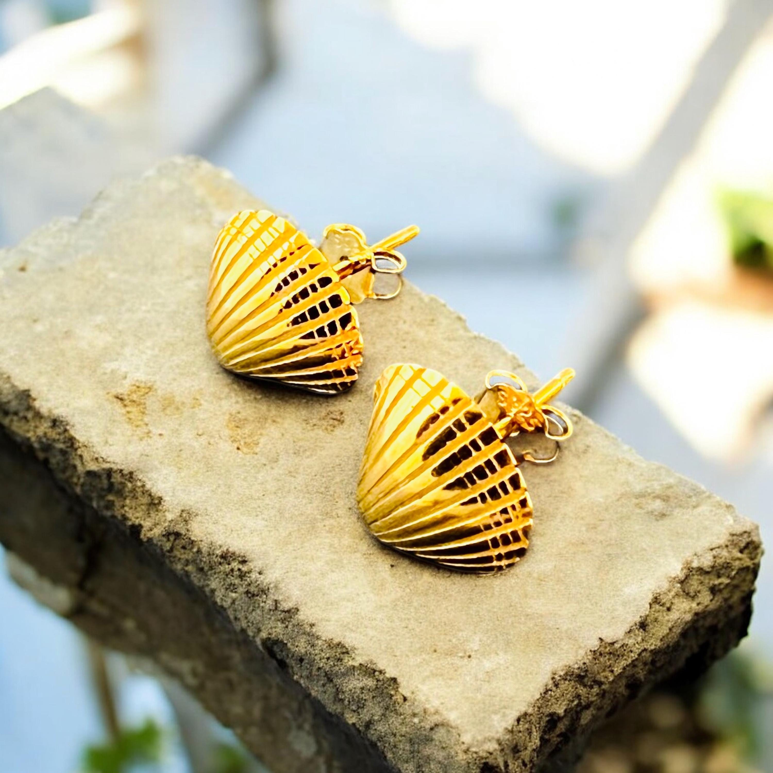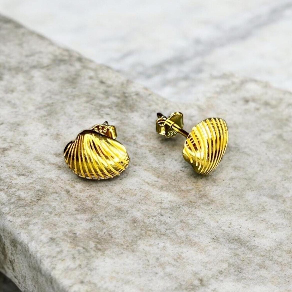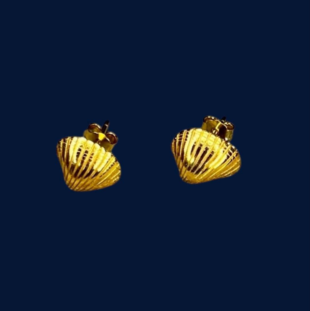 Cockle shell earrings, shell gold, cockle gold, cockle earrings 18 K gold-plated, beach, holiday by the sea, holiday jewelry, Baltic Sea jewelry, ebb and flow, beach, beach vacation