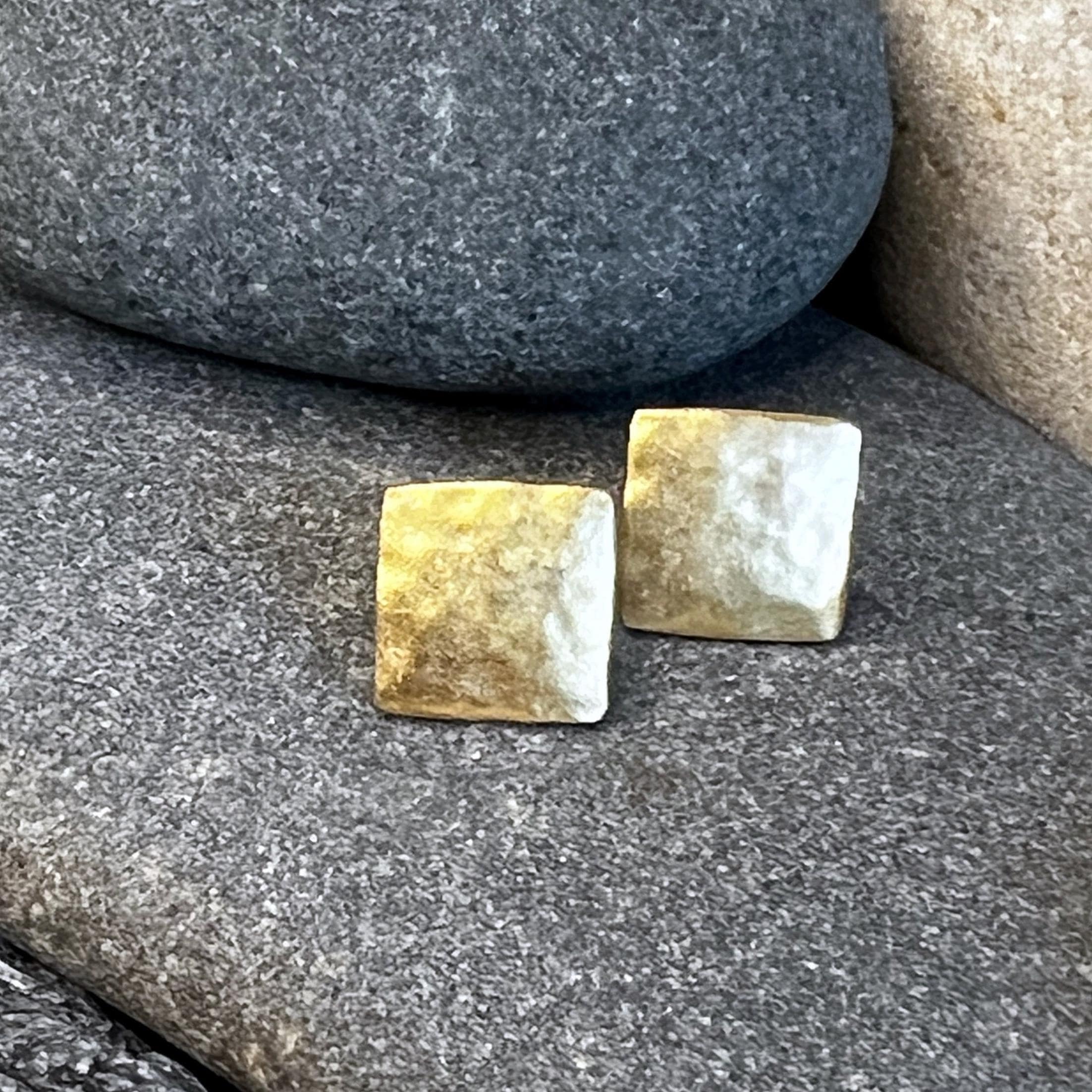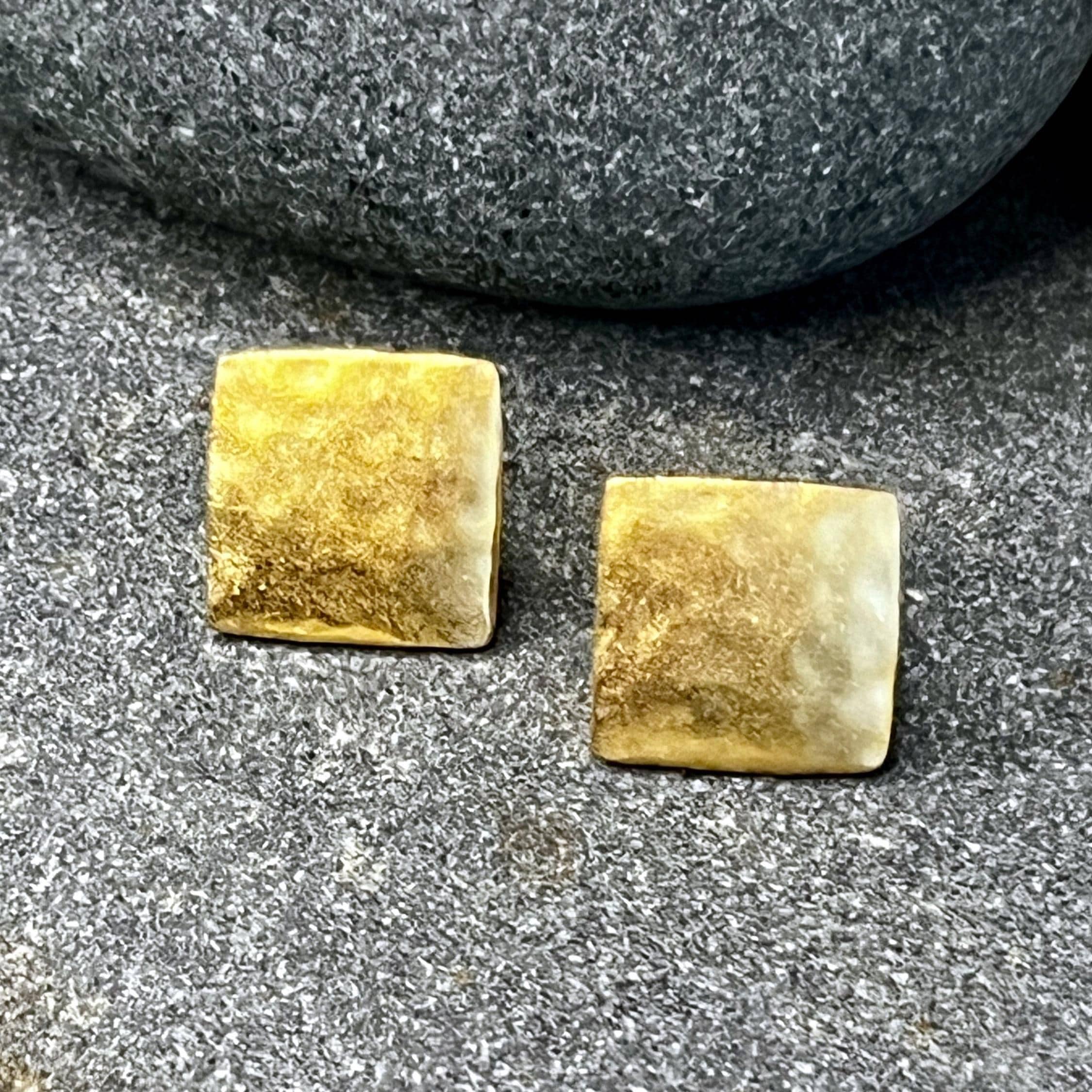 Beautiful, elegant Baltic Gold square stud earrings with a hammered finish. They sparkle in subtle matte gold and add a unique touch to any outfit. They make a lovely jewelry gift for yourself, for your best friend, as a birthday present, or as a gift for your daughter or granddaughter.