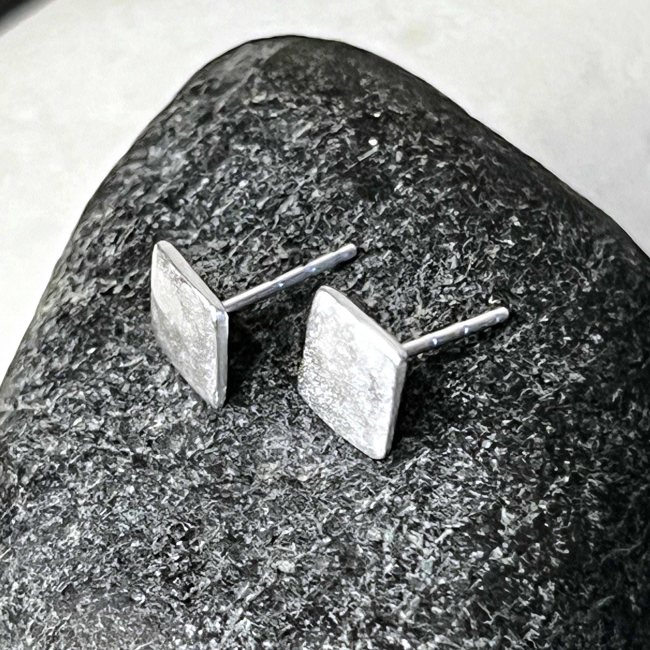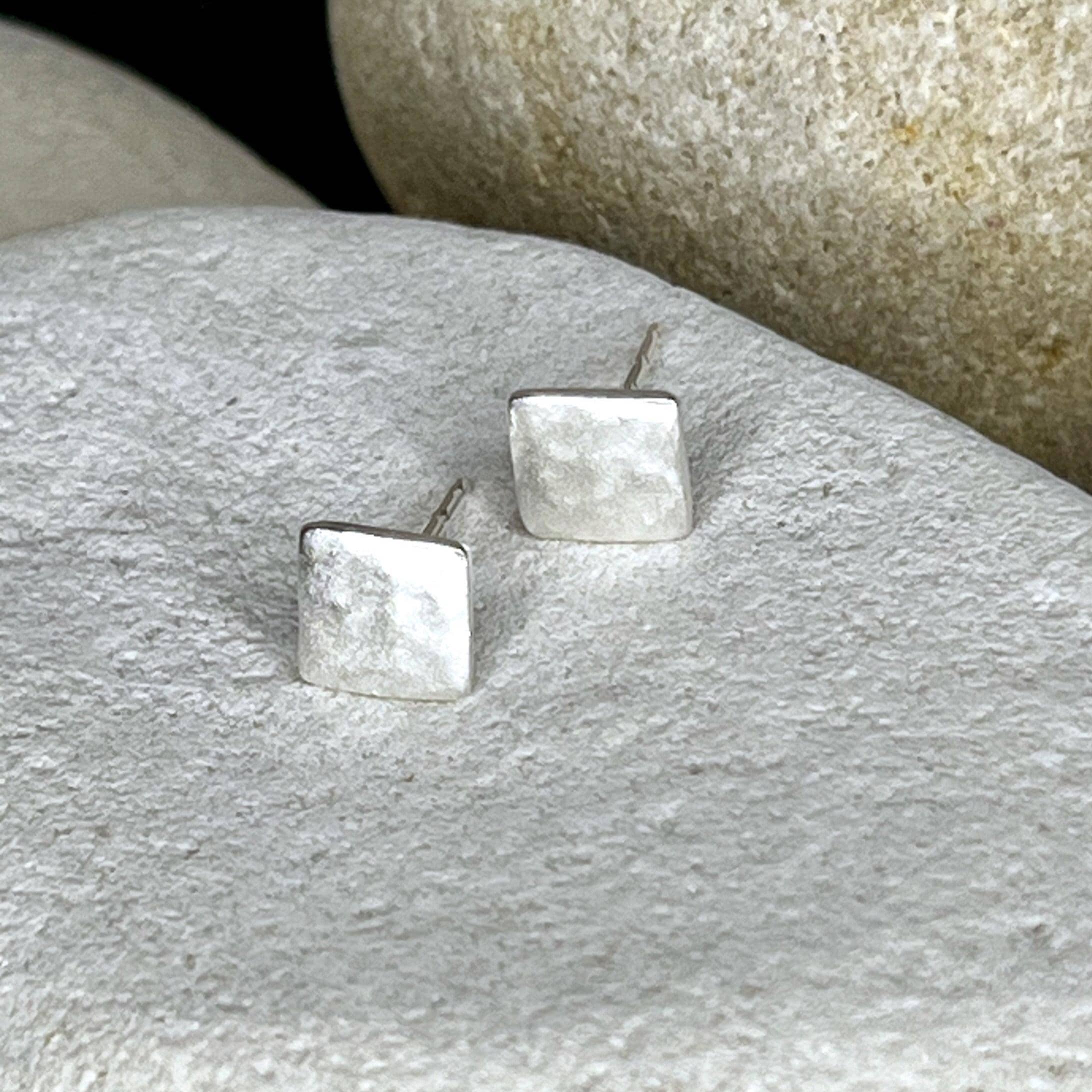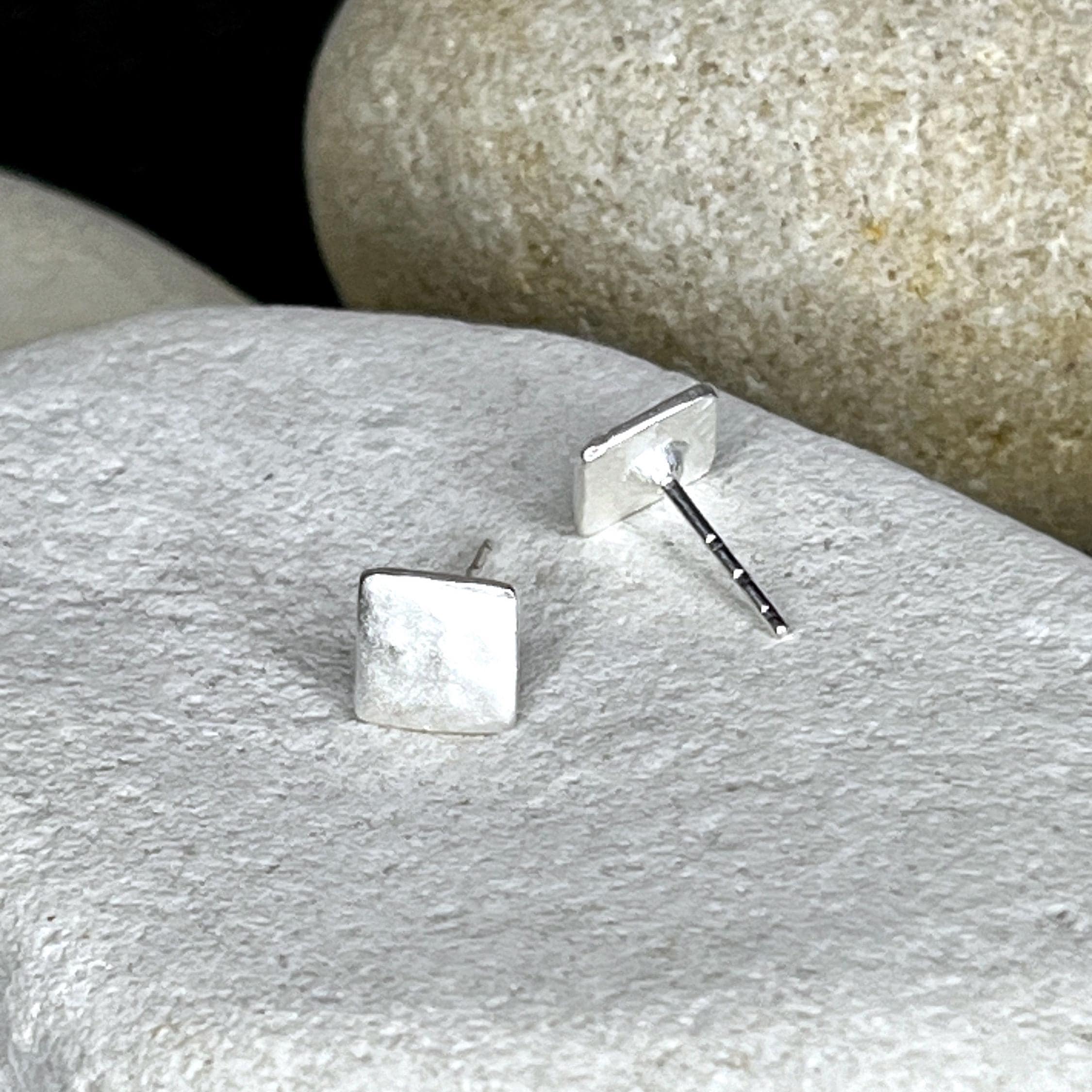 Ebb and Flow North Sea Silver Square Small Stud Earrings - Matt Silver Plated - Earrings by ebbe und flut®