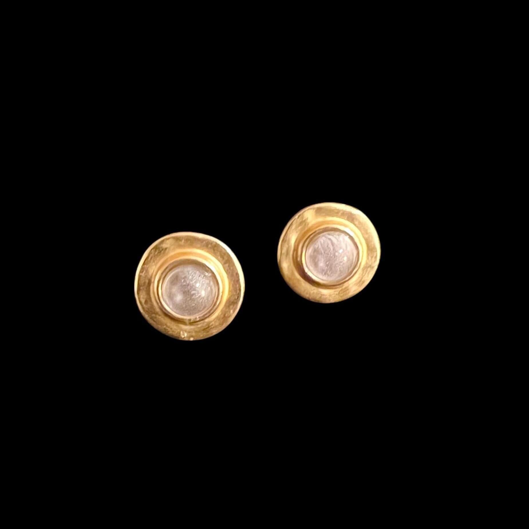 Ebb and Flow Baltic Gold Pink Stud Earrings - Round 22 K matte gold-plated with pink glass stone and silver leaf - Earrings by ebbe und flut®