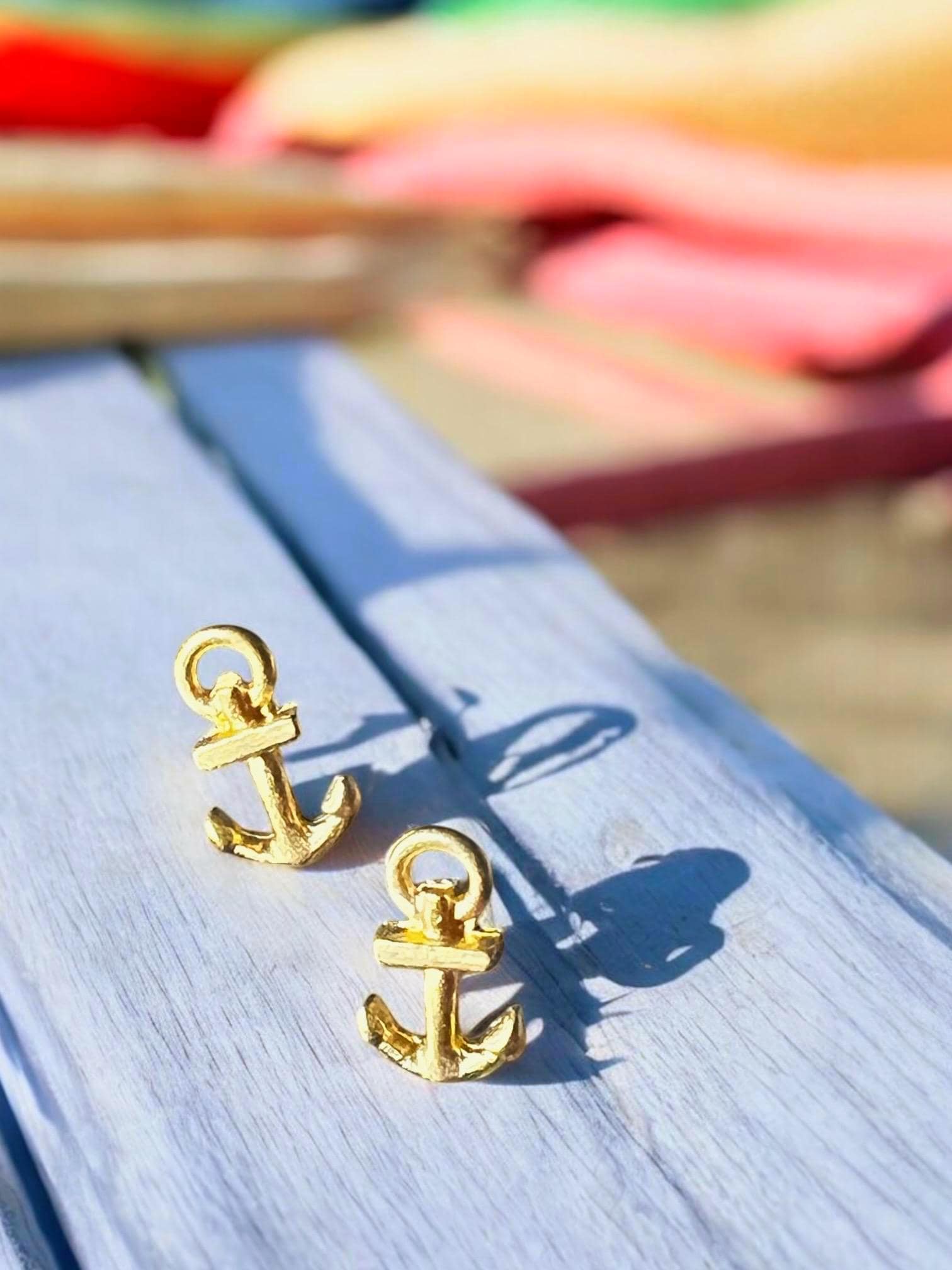 Baltic Sea Anchor Earrings, Ebb and Flow, Gold-plated, Baltic Sea Anchor Earrings, Baltic Sea Jewelry, Ebb and Flow Jewelry, Gold-plated Earrings