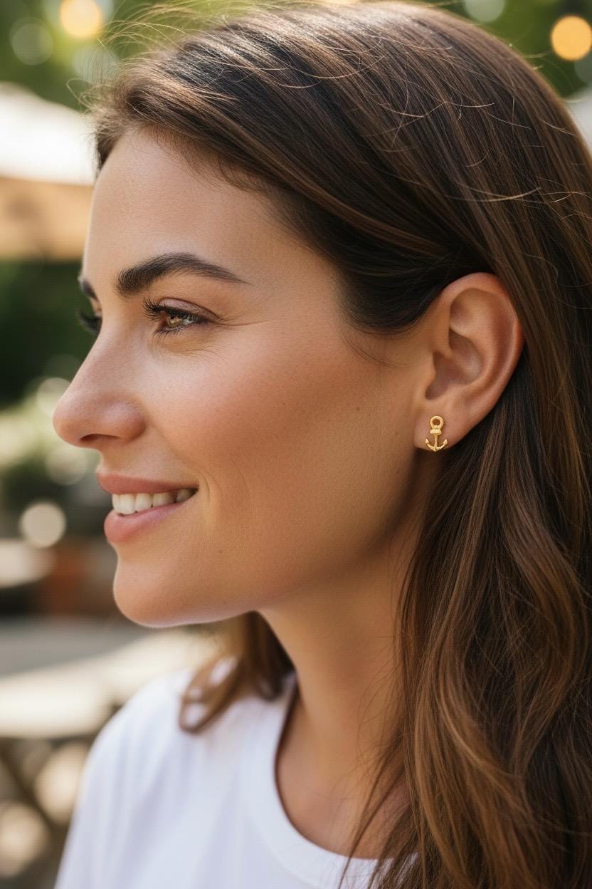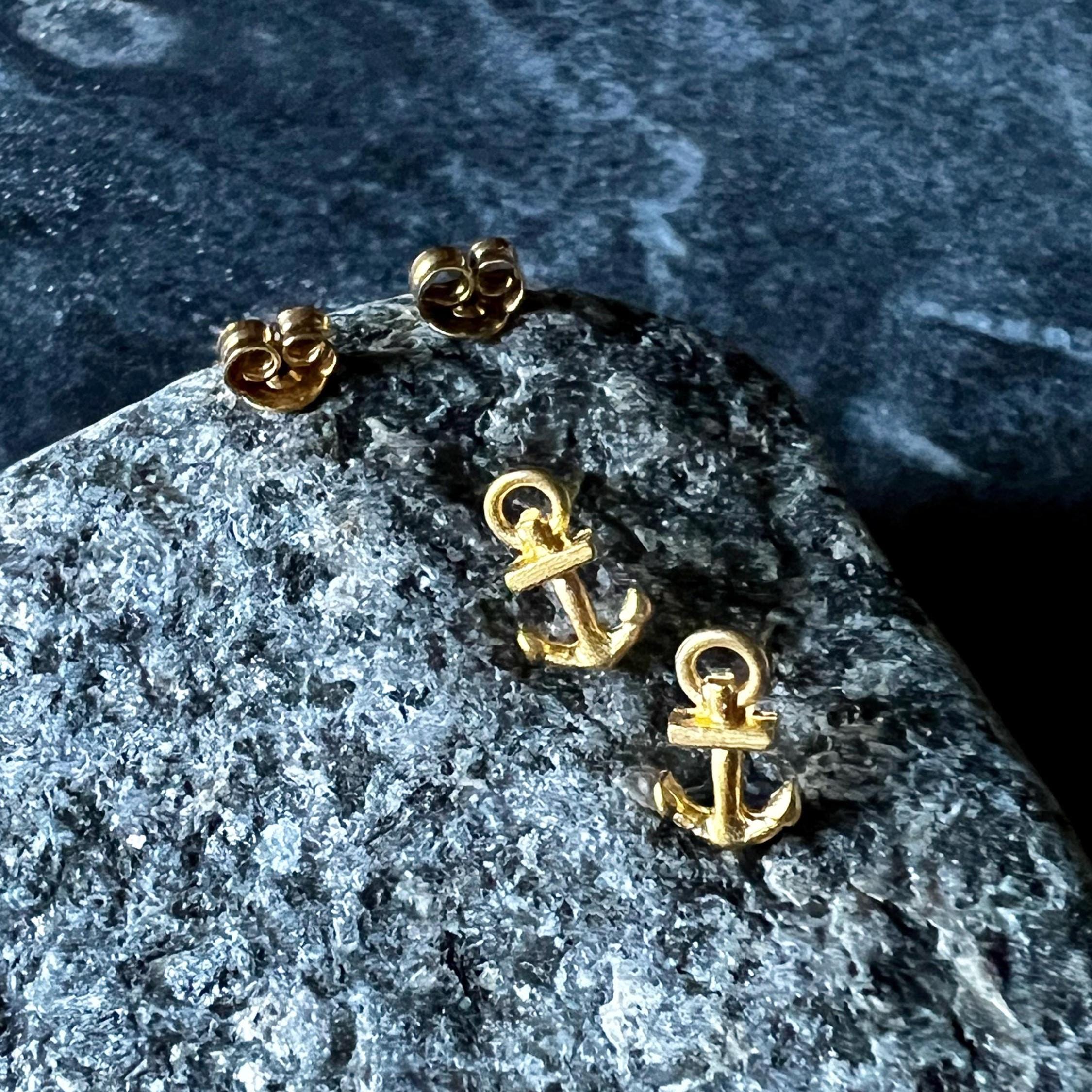 Ebb and Flow Earrings Baltic Sea Anchor Love - 22K matte gold-plated earrings, small anchor