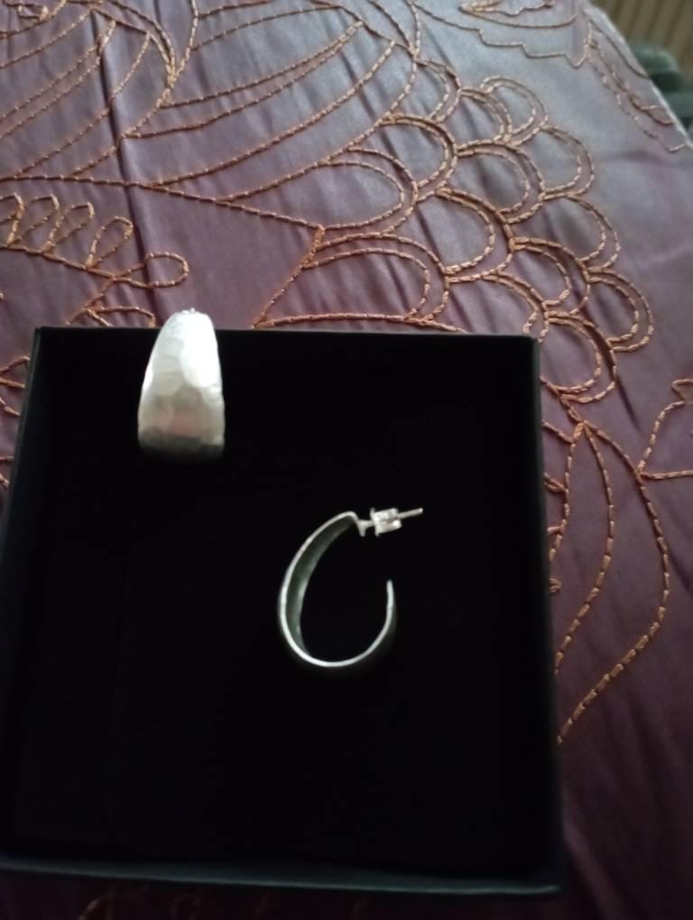These hoop earrings have a hammered finish and are very lightweight. They are glamorous and add a special touch to any outfit. An exclusive and very special jewelry gift for her. The elegant hoop earrings will be shipped in a black jewelry box.