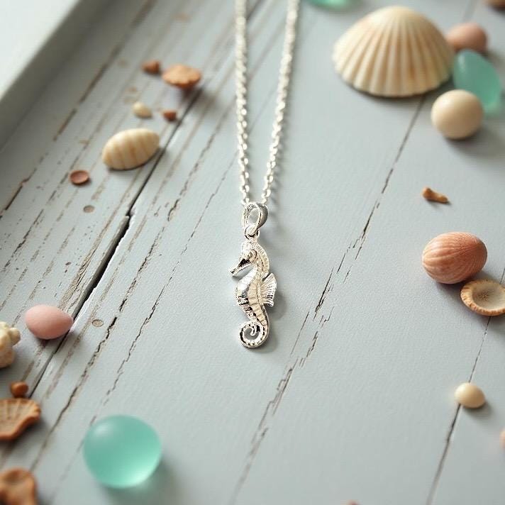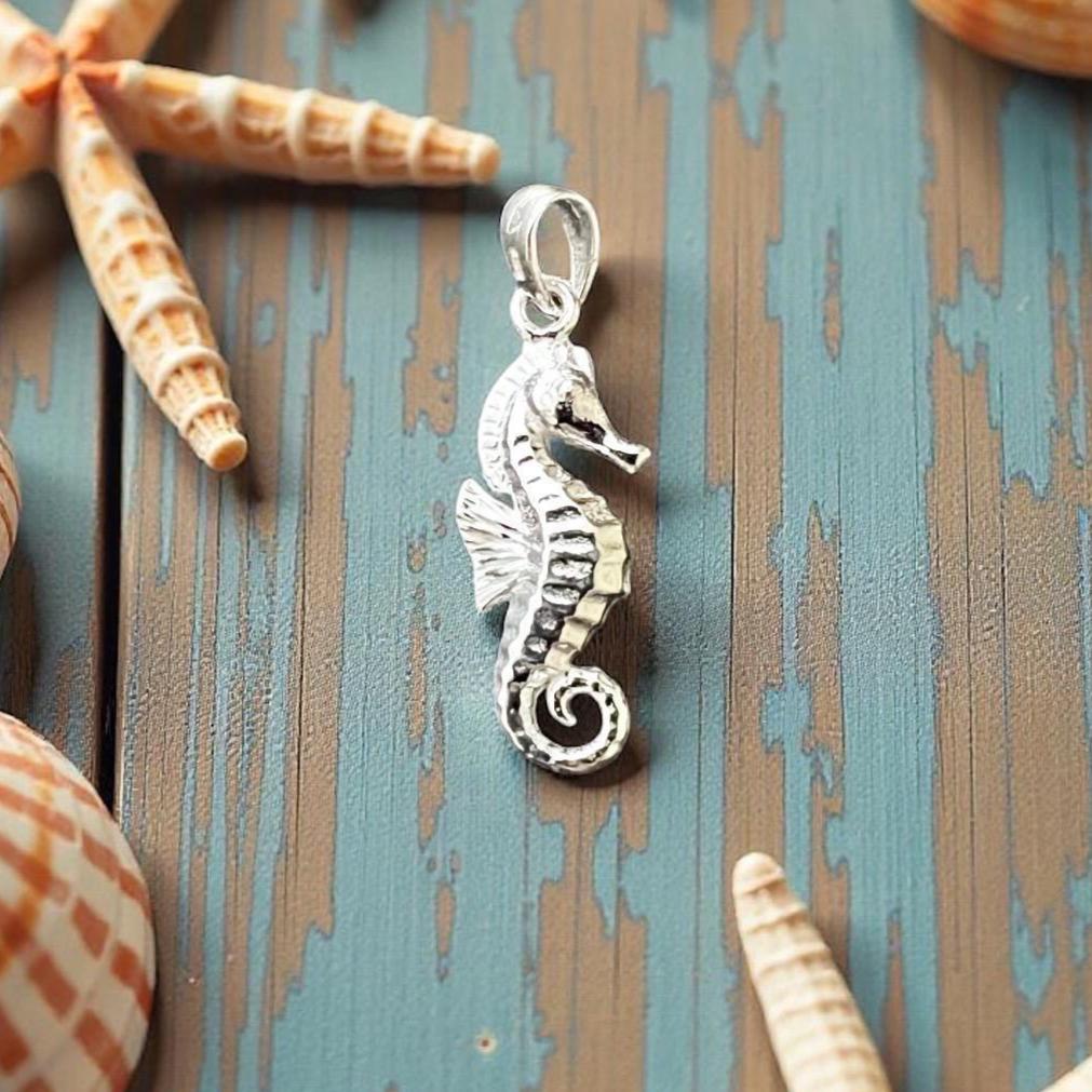 Small seahorse made of silver - detailed seahorse pendant with extra fine silver plating