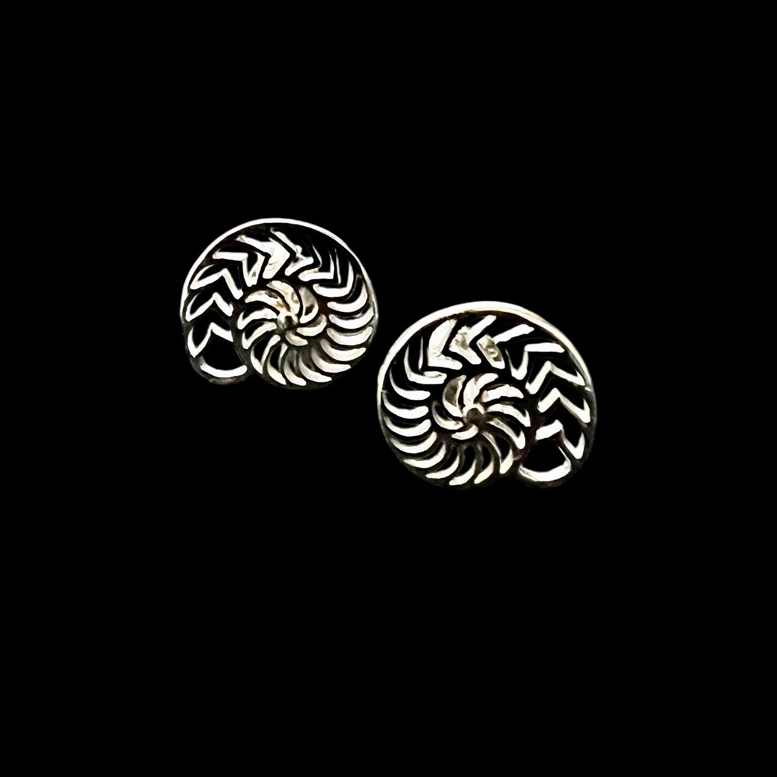 Ebb and Flow Nautilius Shell Stud Earrings - Maritime Earrings 925 Silver Rhodium-plated