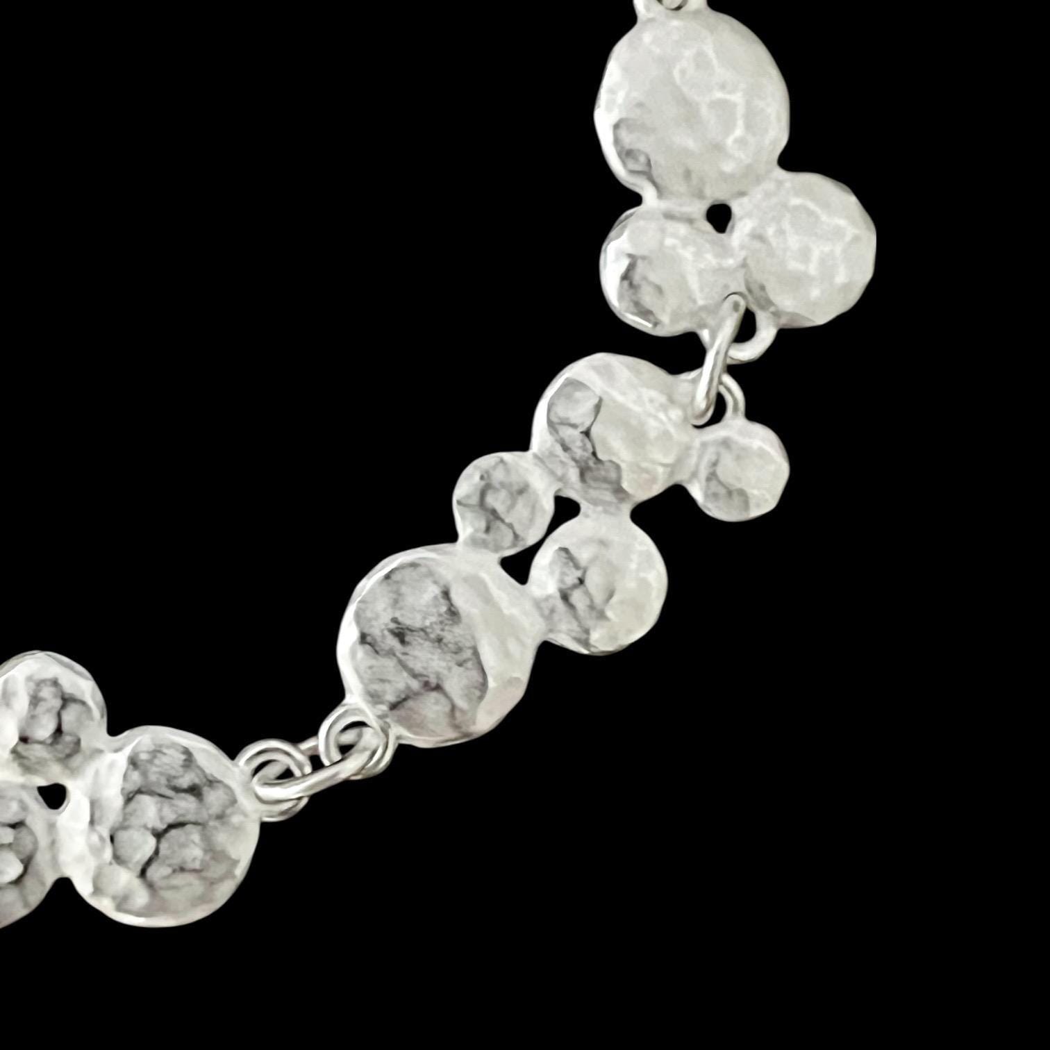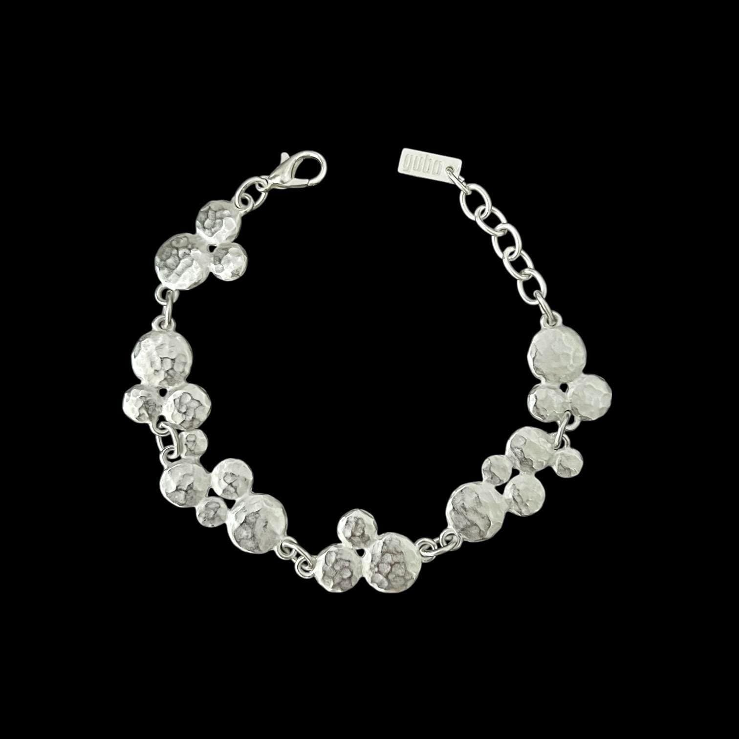 An exclusive bracelet made of small, hammered elements. This elegant bracelet is matte silver-plated and tarnish-resistant. Total length: 17 cm + 3 cm extension chain.