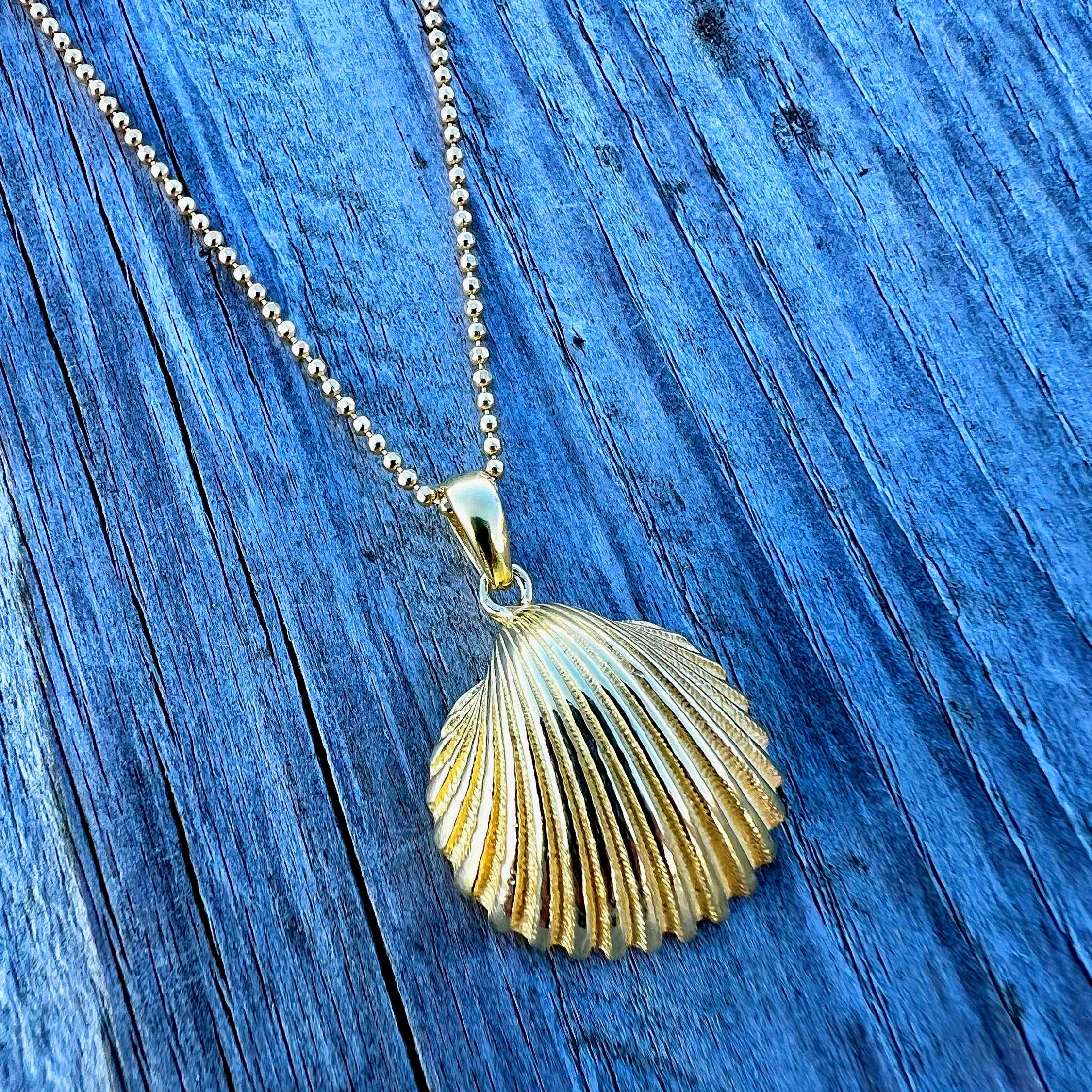 Ebb and Flow Necklace Heart Shell Silver Gold Plated - Medium Shell Necklace made of 925 Silver Gold Plated, Size M