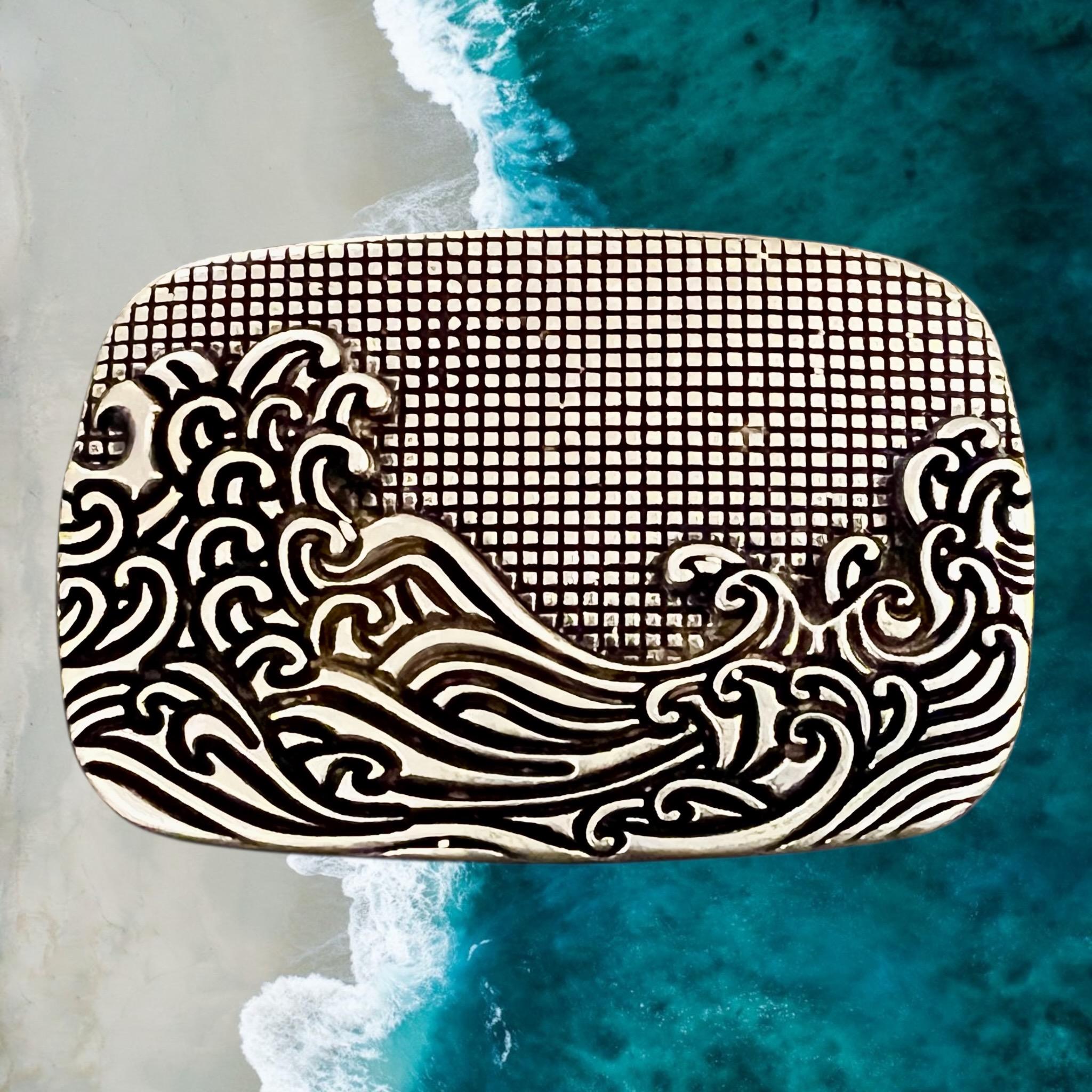 Ebb and Flow Belt Buckle Ocean Wave - Maritime Belt Buckle Ocean Wave for interchangeable belts with 4 cm width