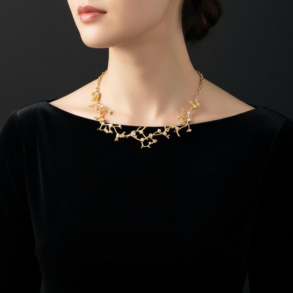 Goldfarbenes Korallen Collier mit Kristallen - Eleganter Statement-Schmuck von der Natur inspiriert