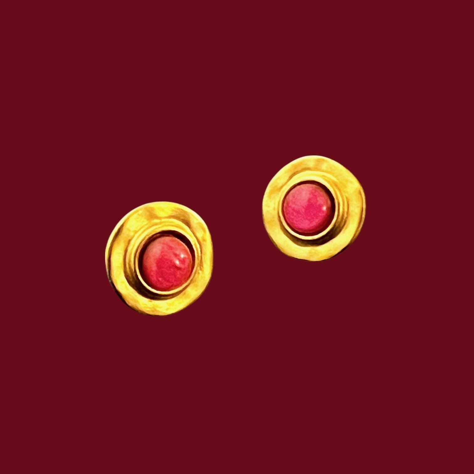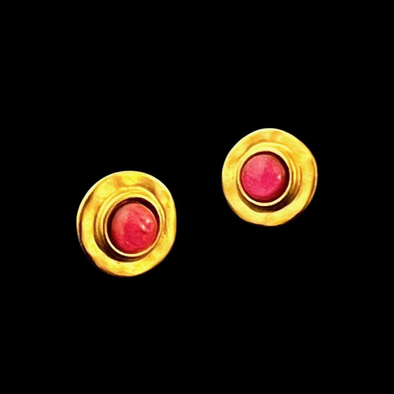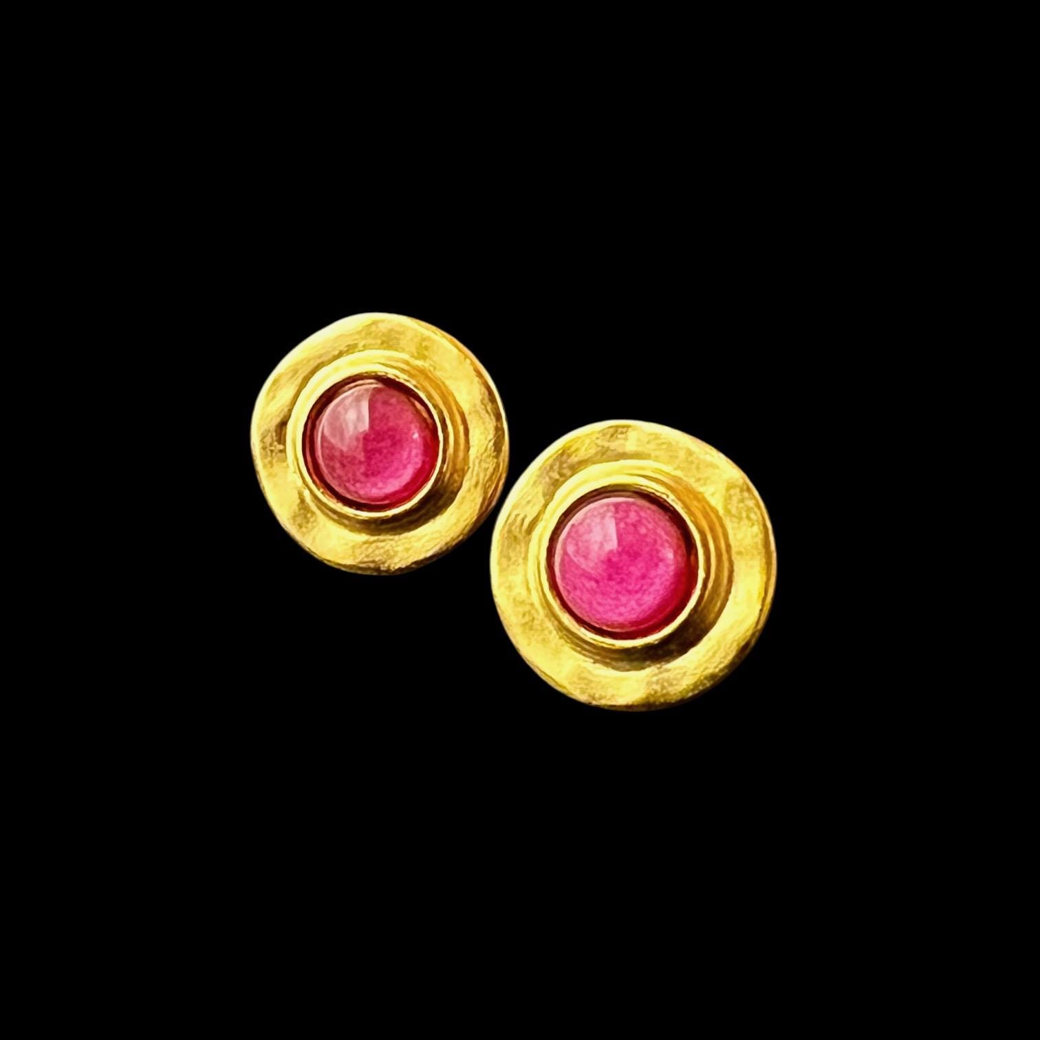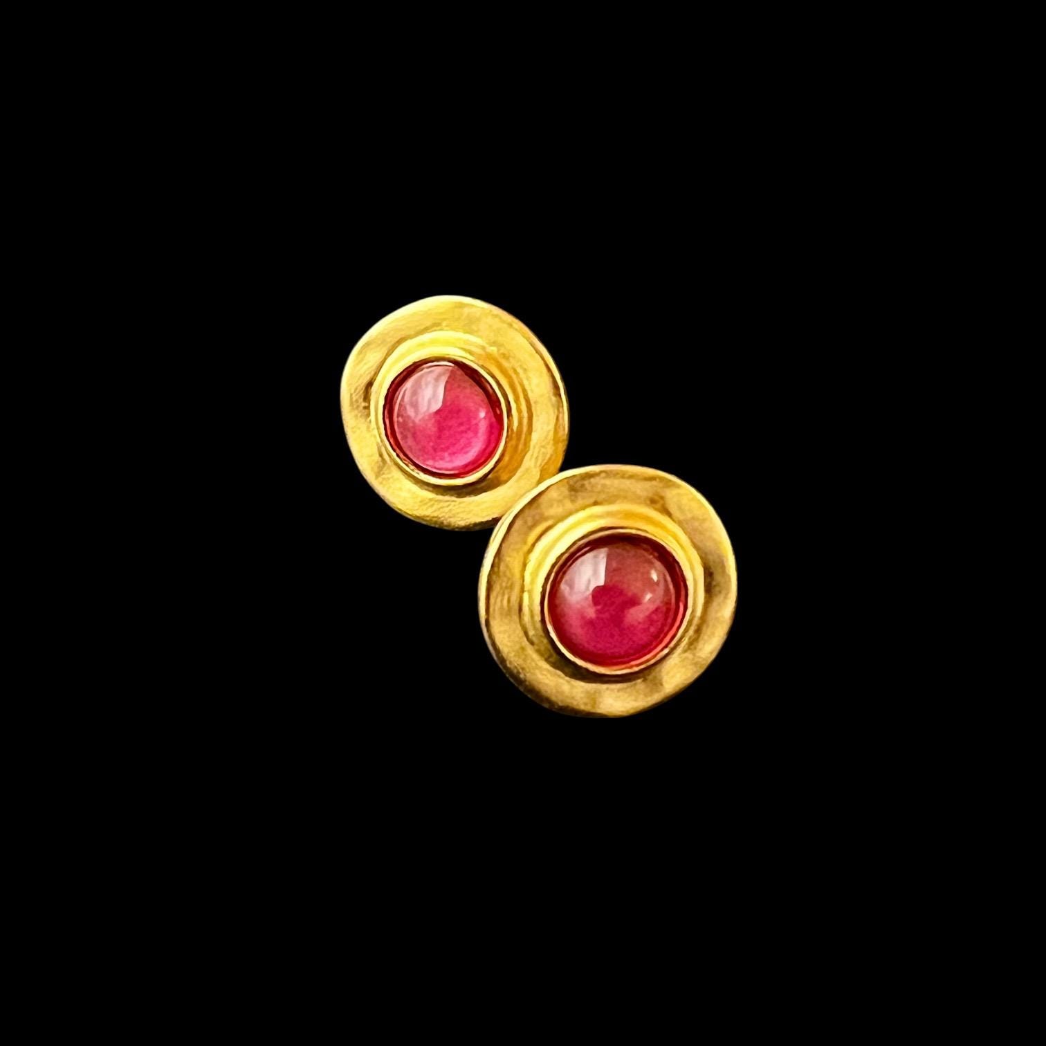 Ebb and Flow Stud Earrings Baltic Gold Fuchsia - Round 22K matte gold plated with glass stone