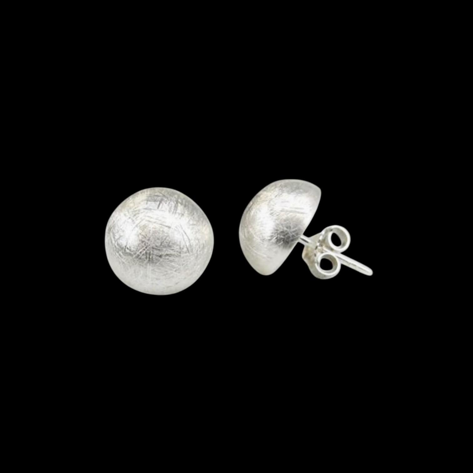 Stud earrings, hemispherical shape, made of solid silver, ice-matte finish.