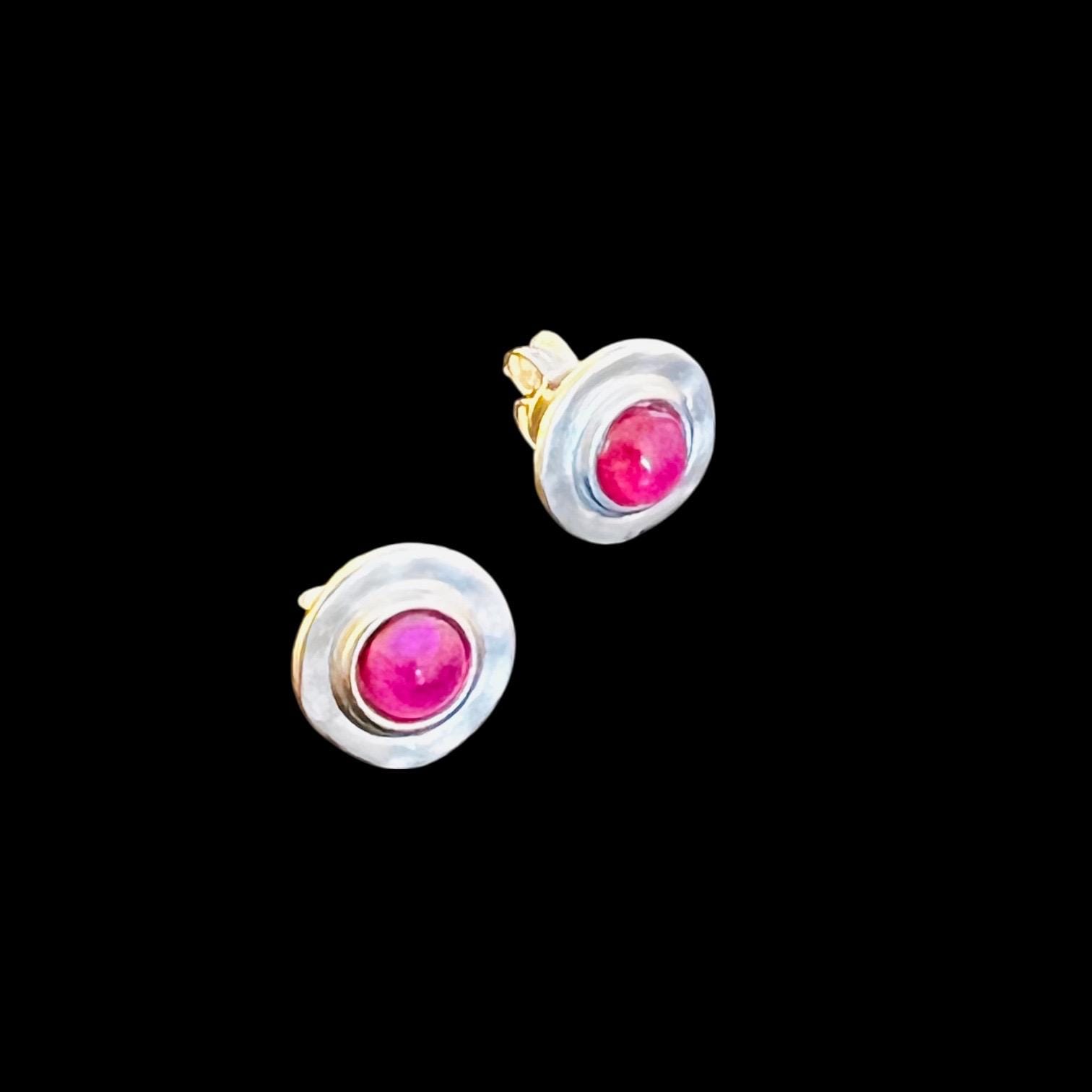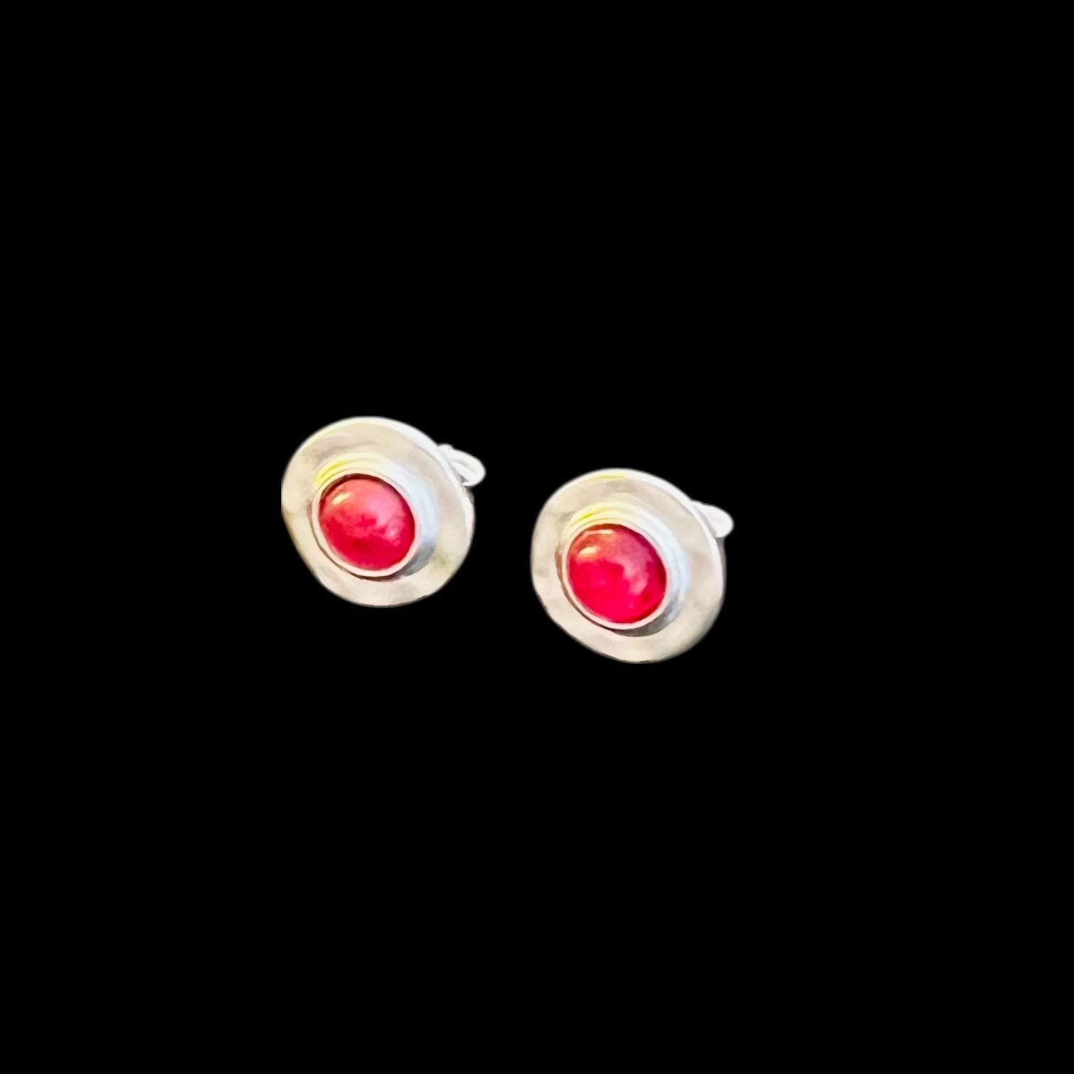 Wunderschöne Ohrstecker Nordseesilber fuchsia in gehämmerter Optik. Ohrstecker in runder, gehämmerter Optik, Durchmesser gesamt ca. 11 mm mit leuchtendem Glasstein mit Blattsilber Größe ca. 5 mm.