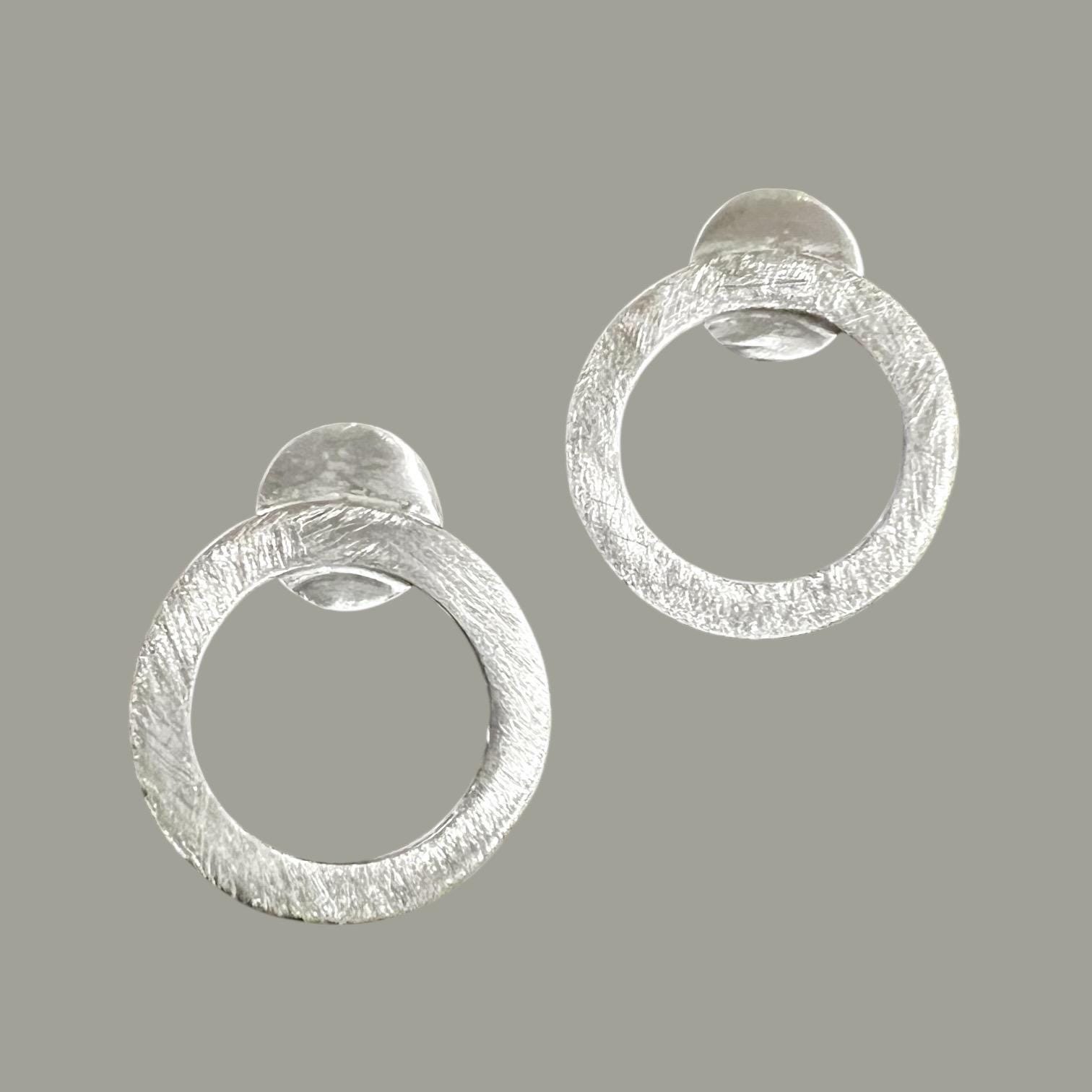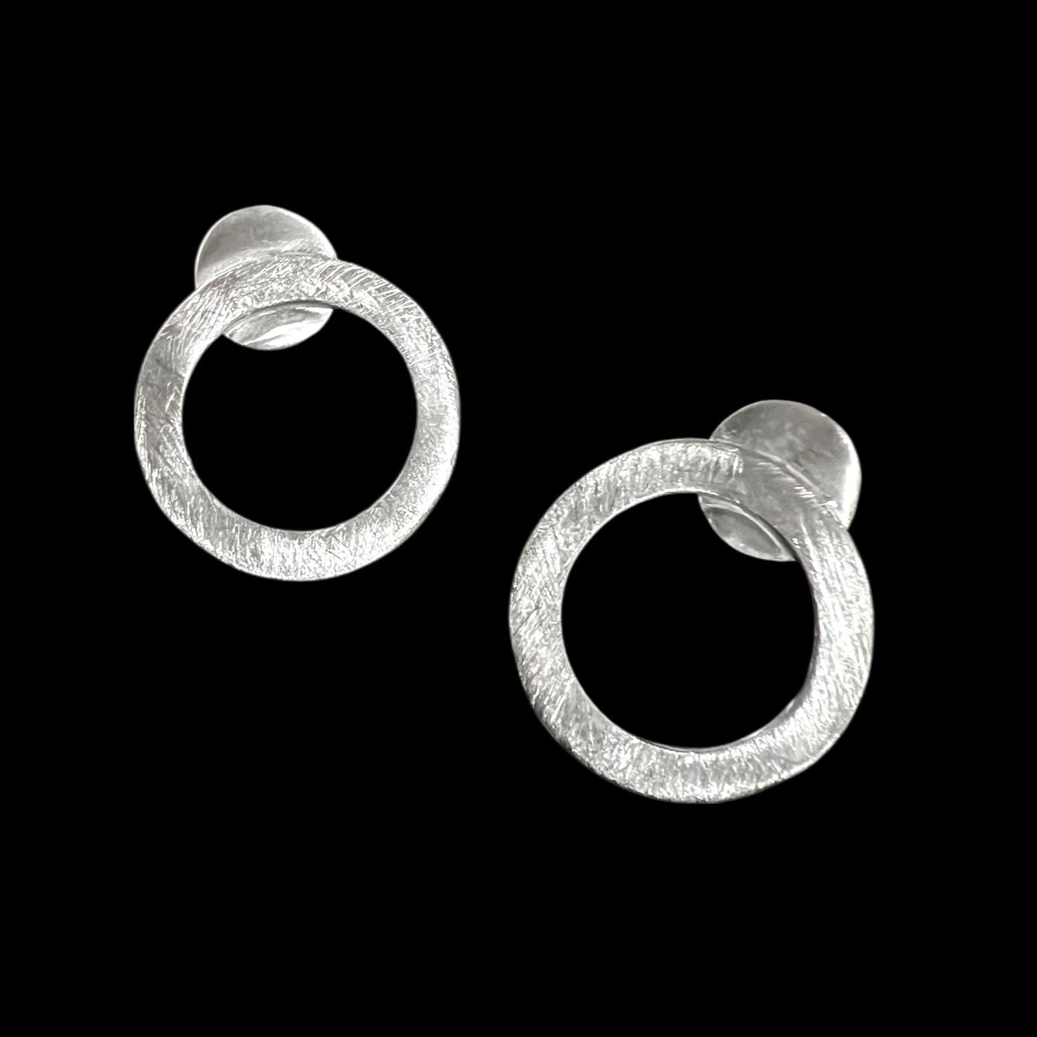 Ebb and Flow Stud Earrings, Silver, North Sea Tidal Circle, Solid Silver, Icematt, Matte Silver