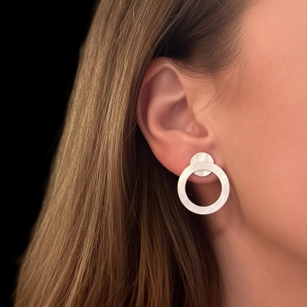 Statement stud earrings. Handcrafted from 925 sterling silver with an ice-matte finish. These earrings have a clean and modern look, perfect for everyday wear as well as special occasions. The matte, silver-plated finish gives the earrings a subtle, minimalist feel. The 925 sterling silver ensures durability and high quality. These earrings are a beautiful addition to your jewelry collection and will add a stylish touch to your outfits.
