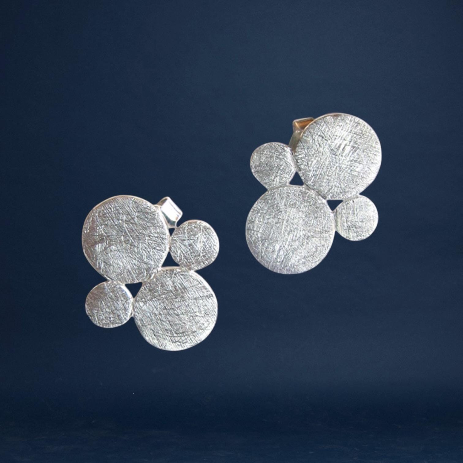 These timeless stud earrings in 925 sterling silver impress with their understated elegance and finely matte finish. The small circles subtly reflect the light, making these earrings the perfect everyday accessory – minimalist, modern, and stylish.