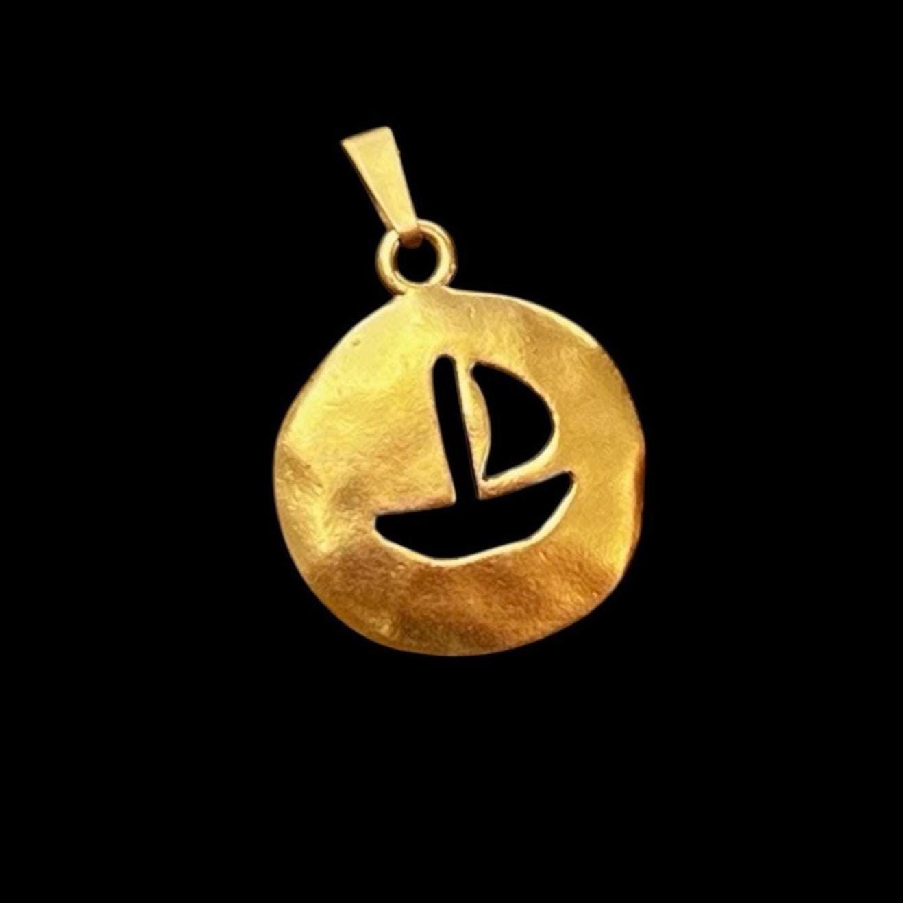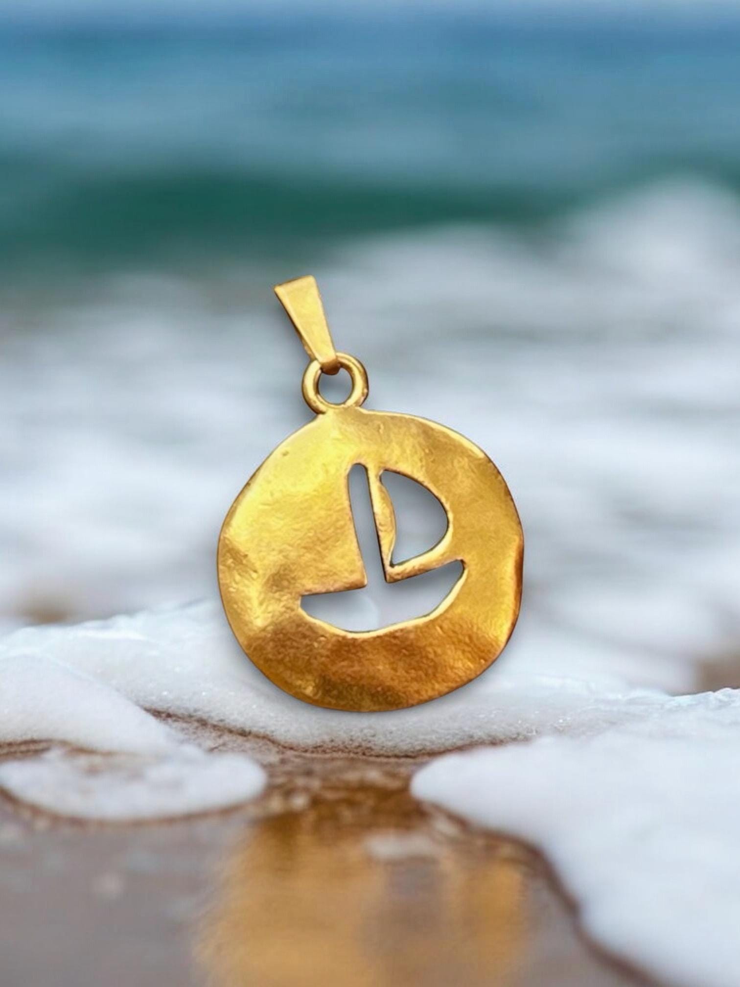 Tides pendant sailboat round - maritime pendant with boat motif matte gold plated