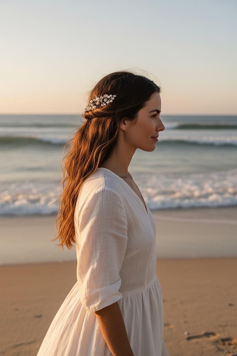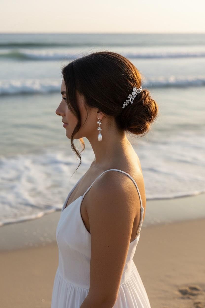 The combination of shimmering pearls and clear stones is reminiscent of the play of light on the water and gives your bridal look a natural, maritime elegance.