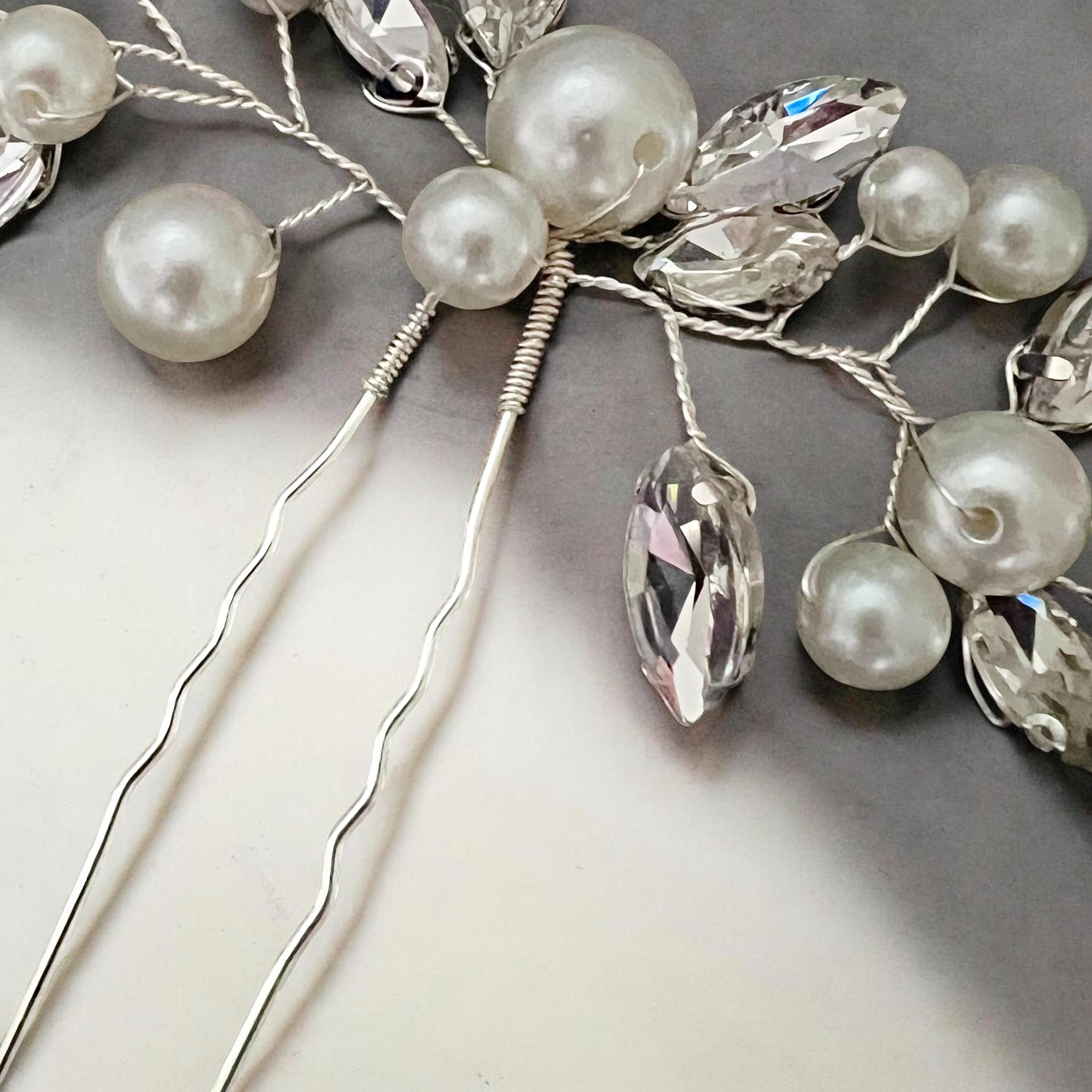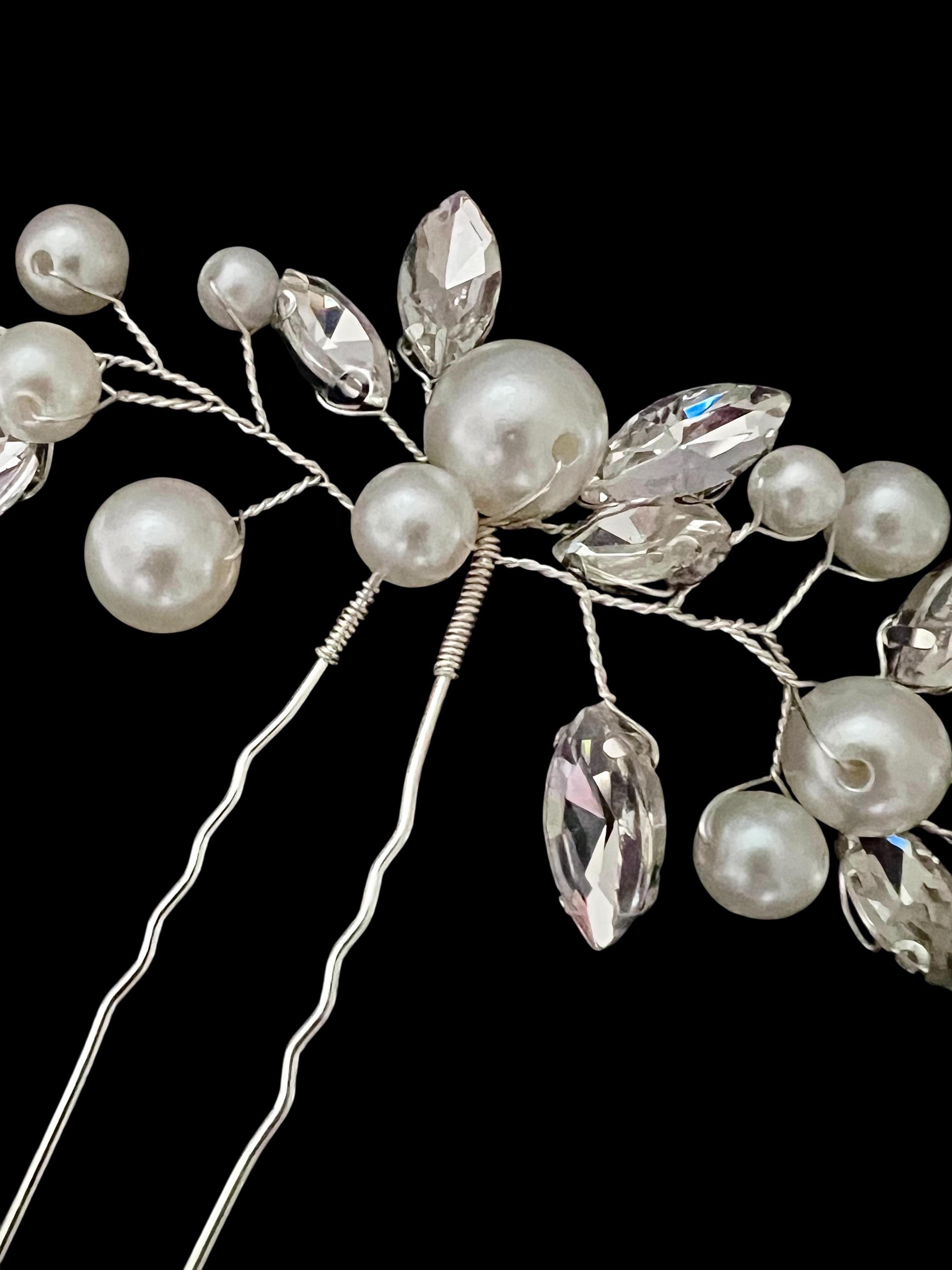 Bridal hairpin with pearls and crystals, vintage style