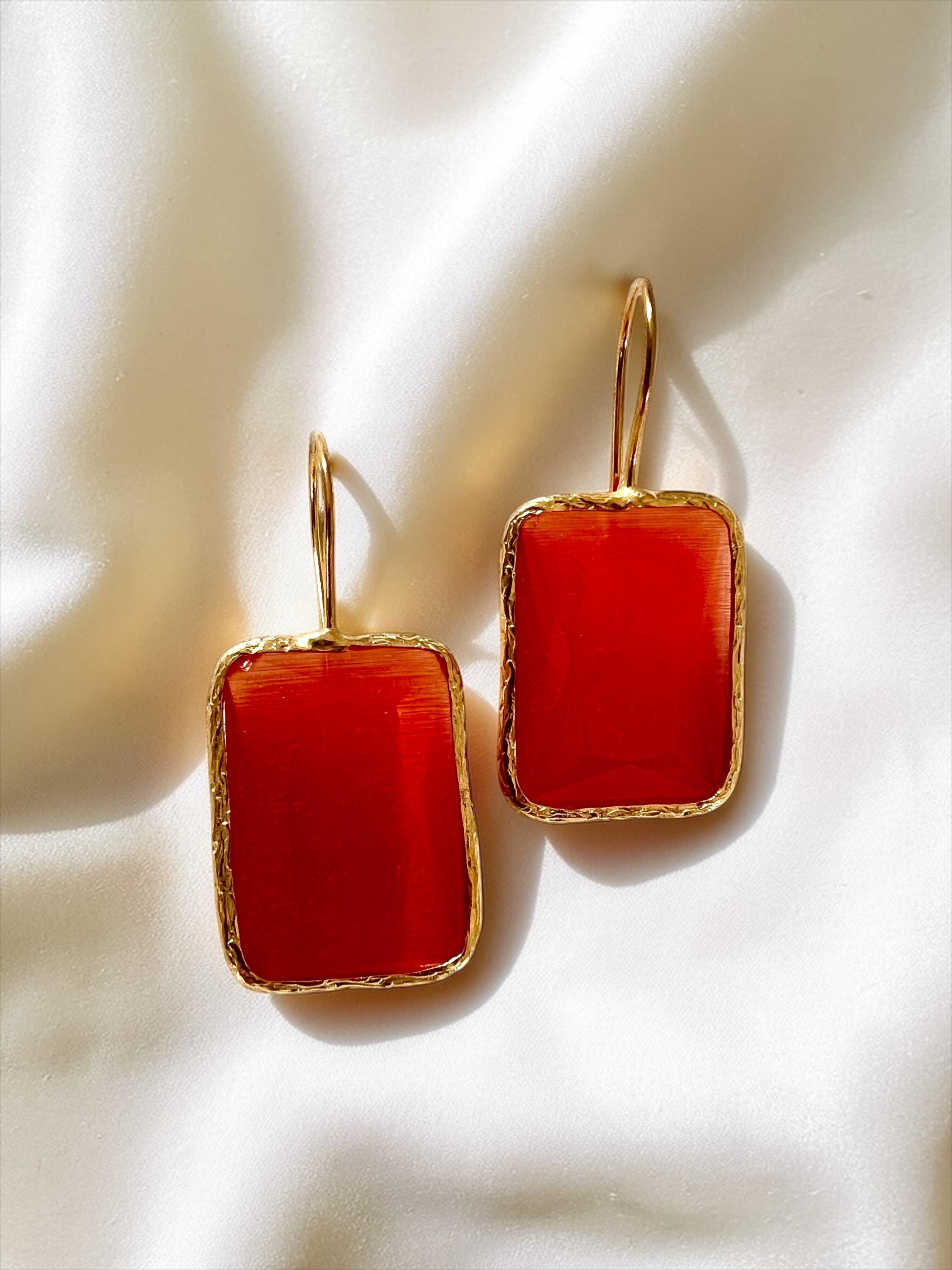 Ebb and Flow Gold Orange Square Cat-Eye Large Drop Earrings - Minimalist Elegant Gold Earrings, Gift for Her