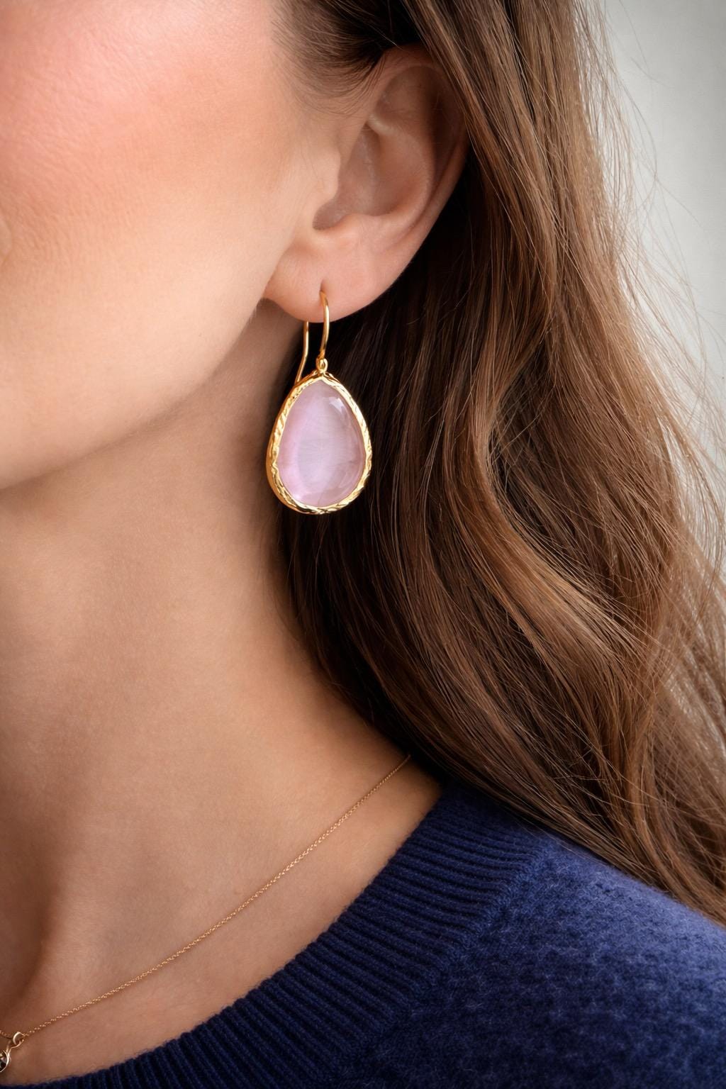 Ebb and Flow Gold Pink Cat-Eye Drop Earrings - Baltic Gold Earrings Minimalist Elegant, Gift for Her