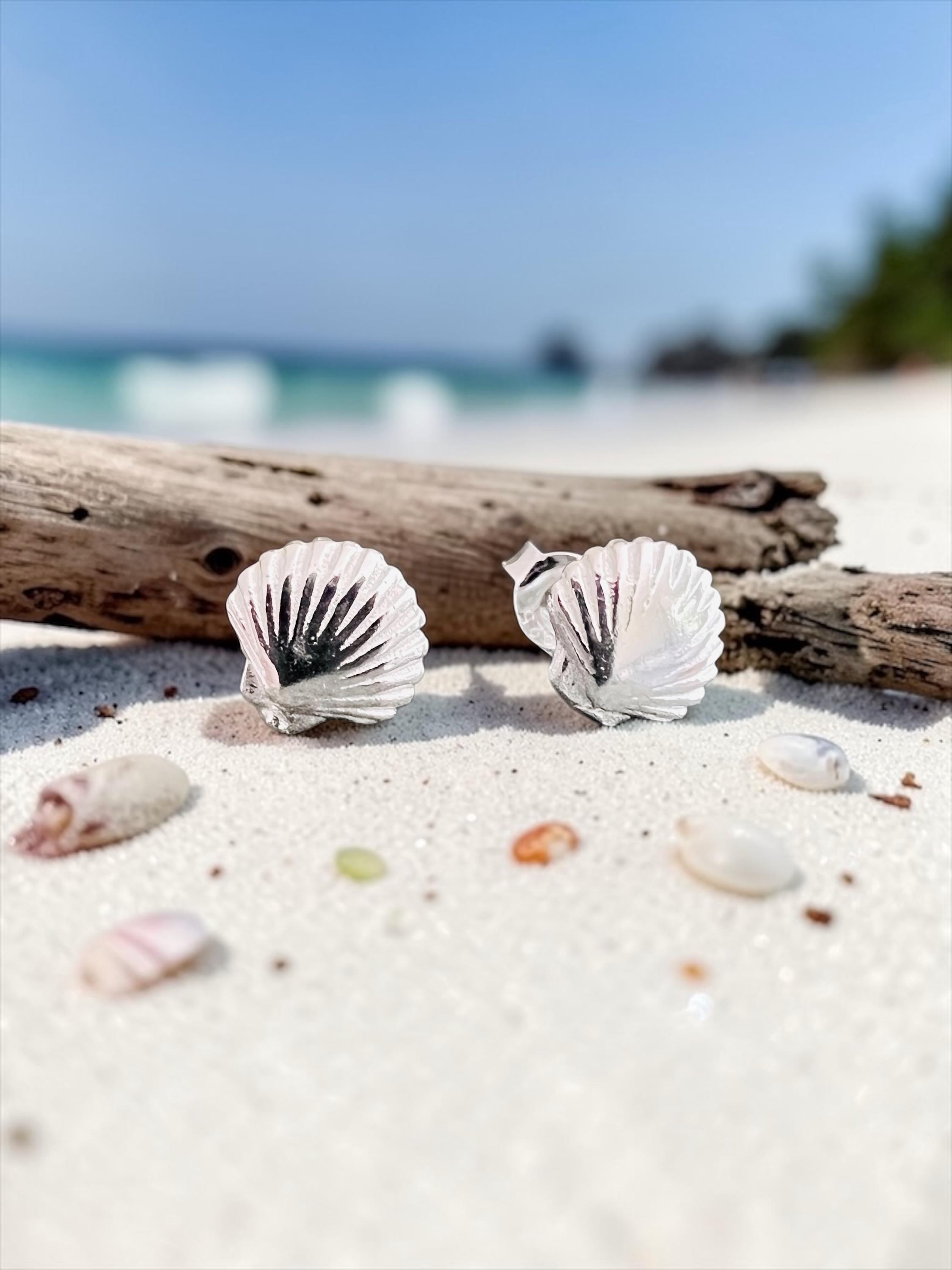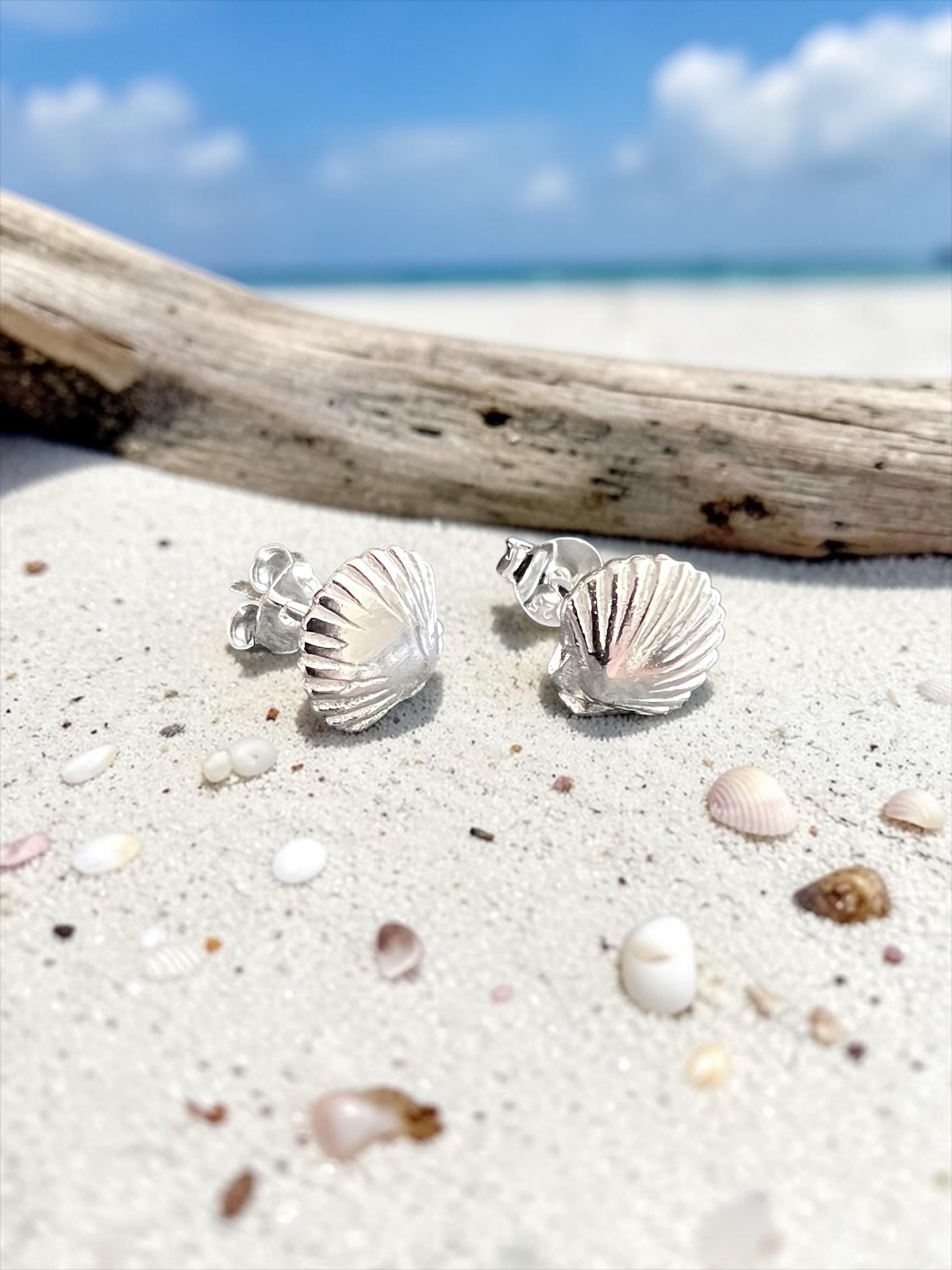 Our ebb and flow mini shell stud earrings in silver make a lovely gift for you, perfect as holiday jewelry for beautiful days at the beach.