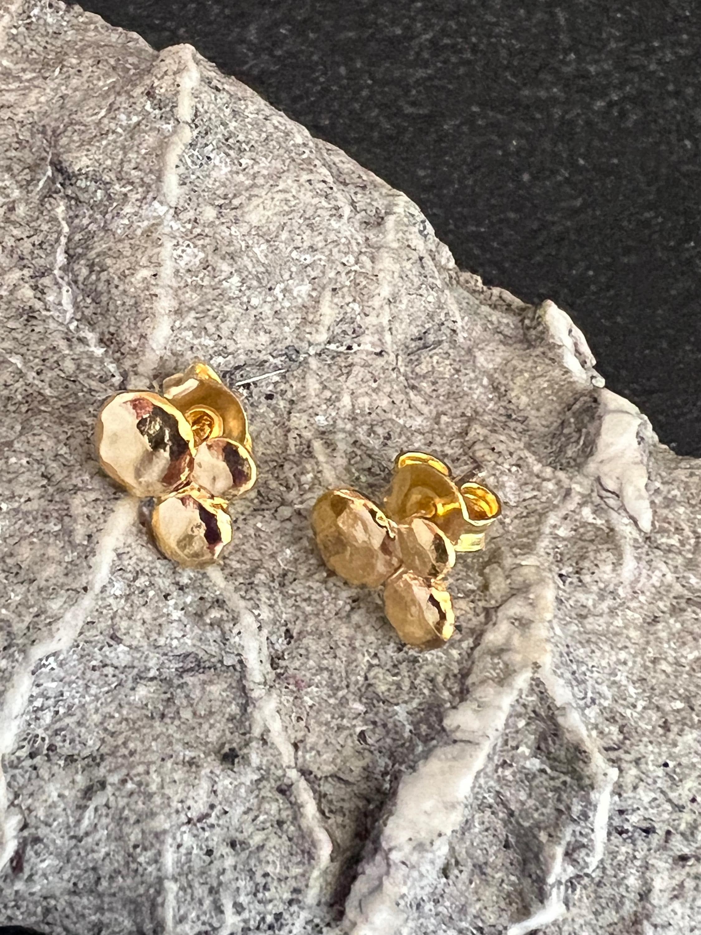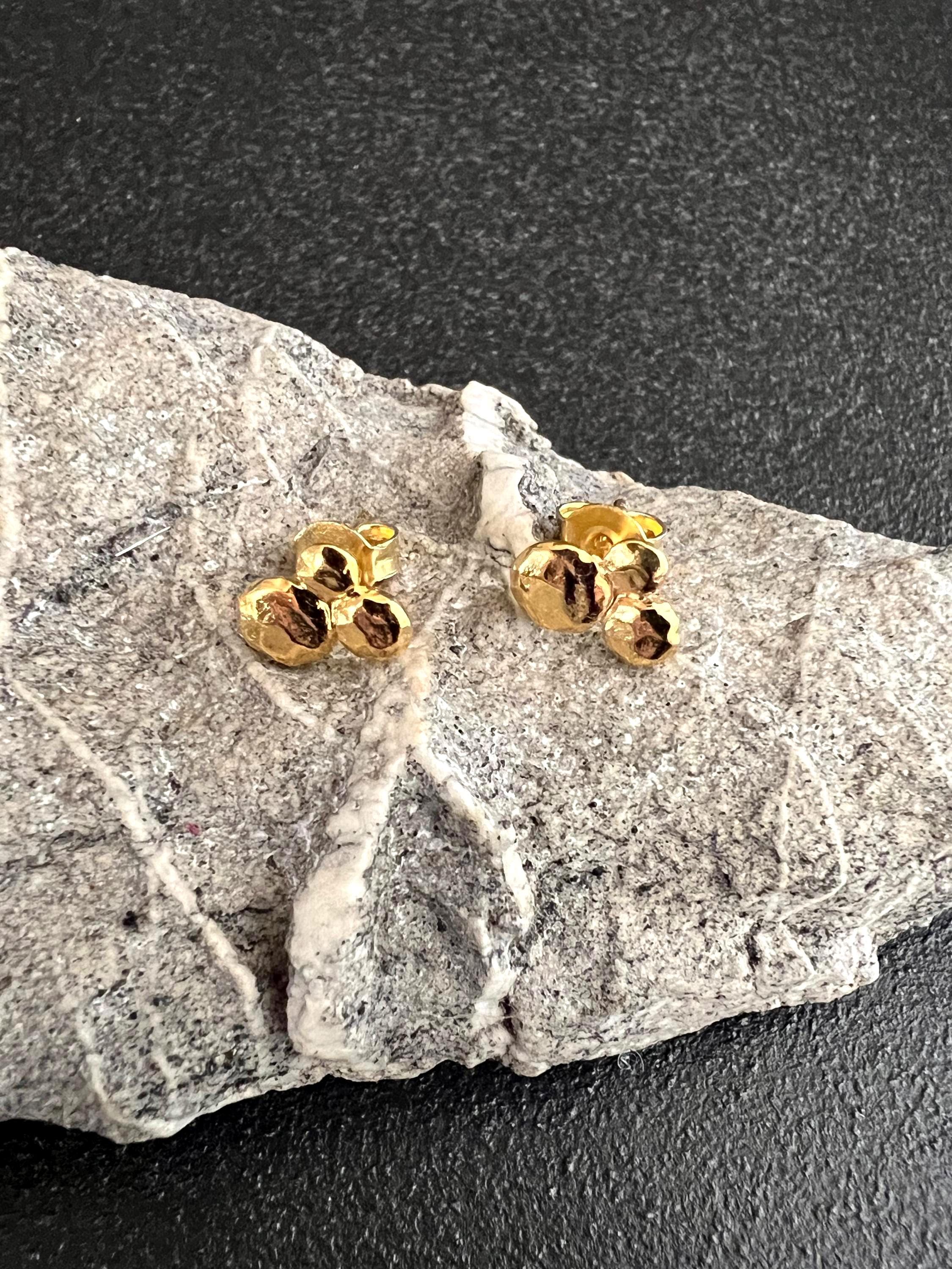 Baltic Sea beach gold stud earrings - 22K gold plated, hammered look