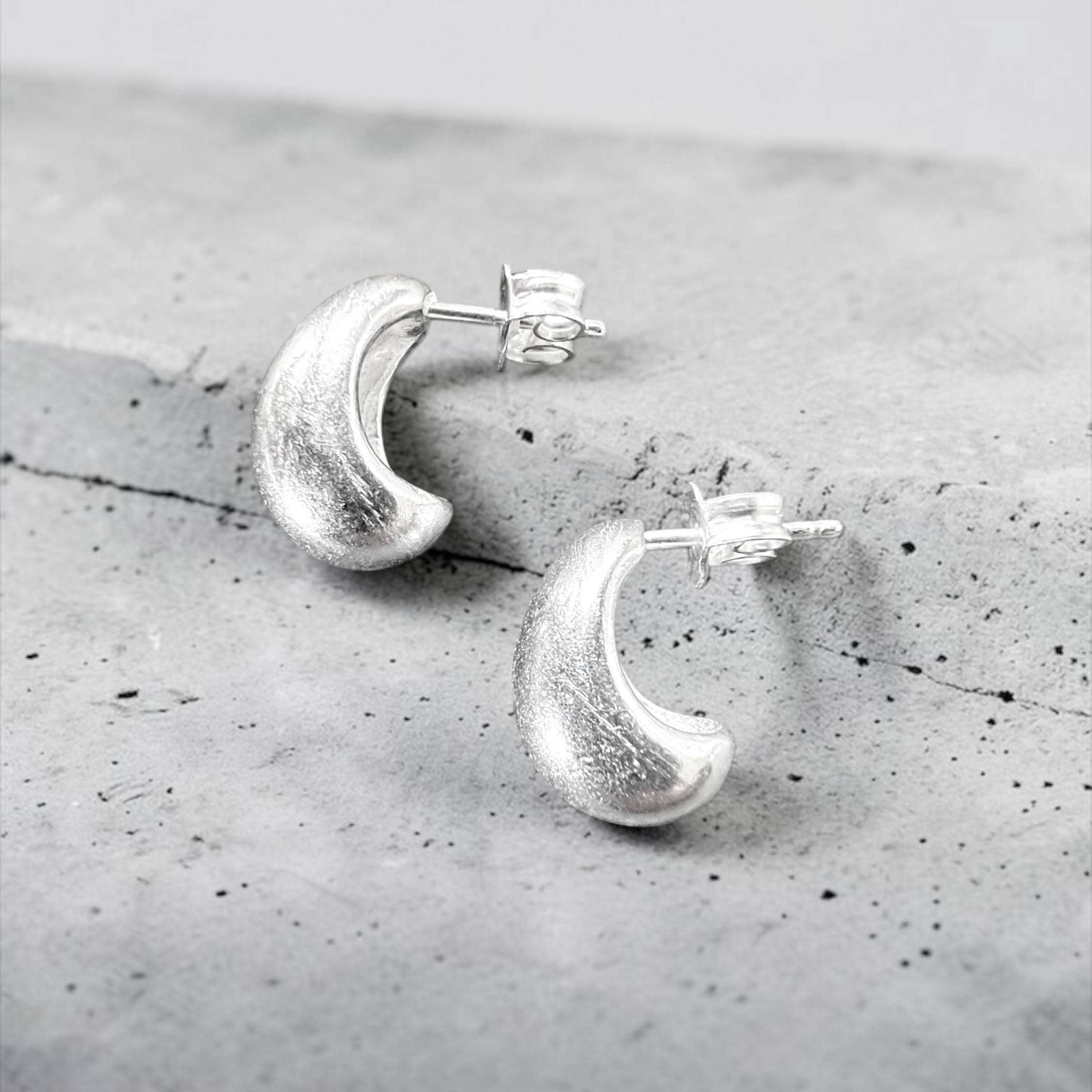 Ebb and Flow Silver Half Hoop Earrings "Dune Arch" North Sea - minimalist stud earrings, matte silver plated - C-shape - modern & timeless