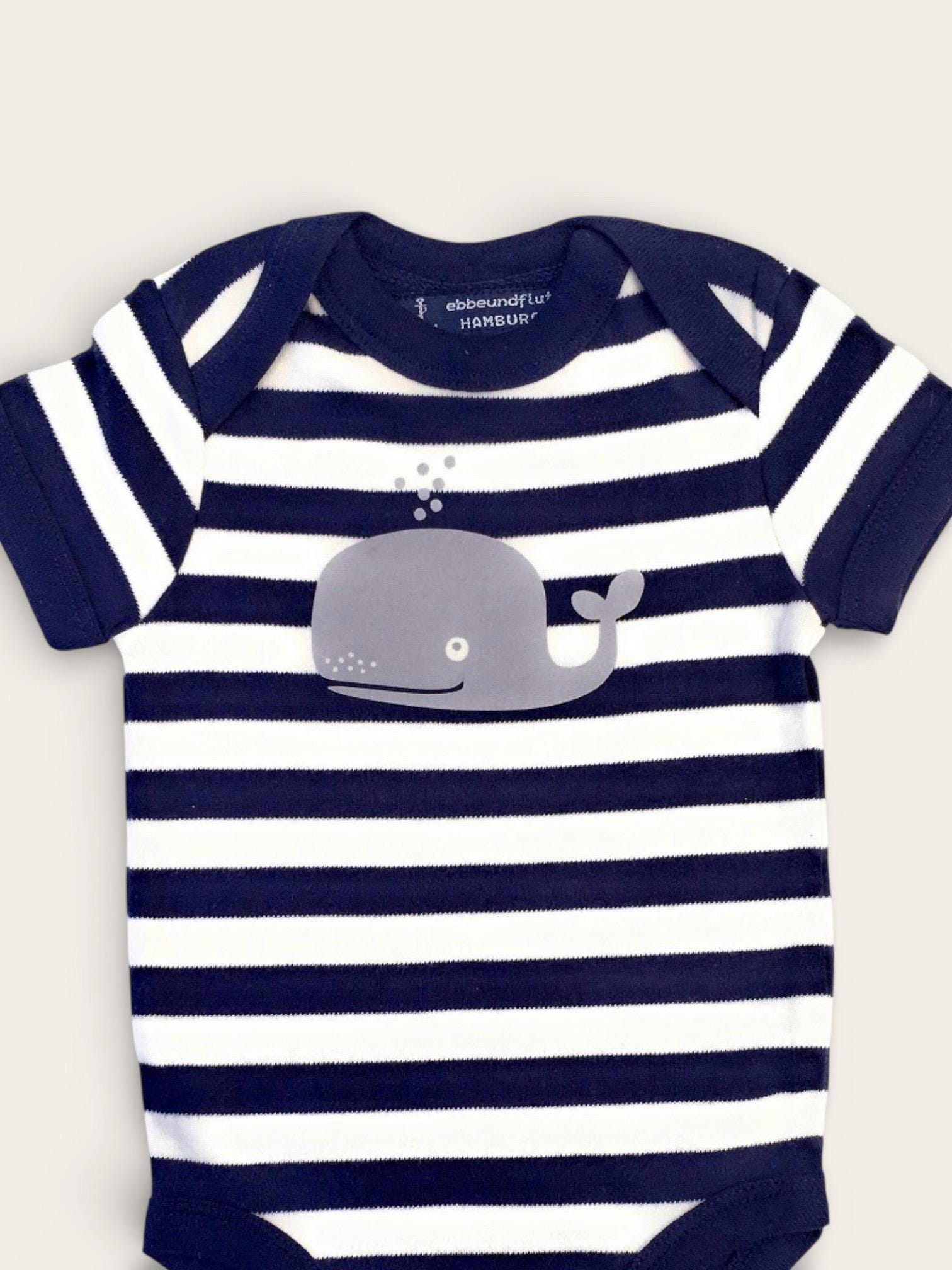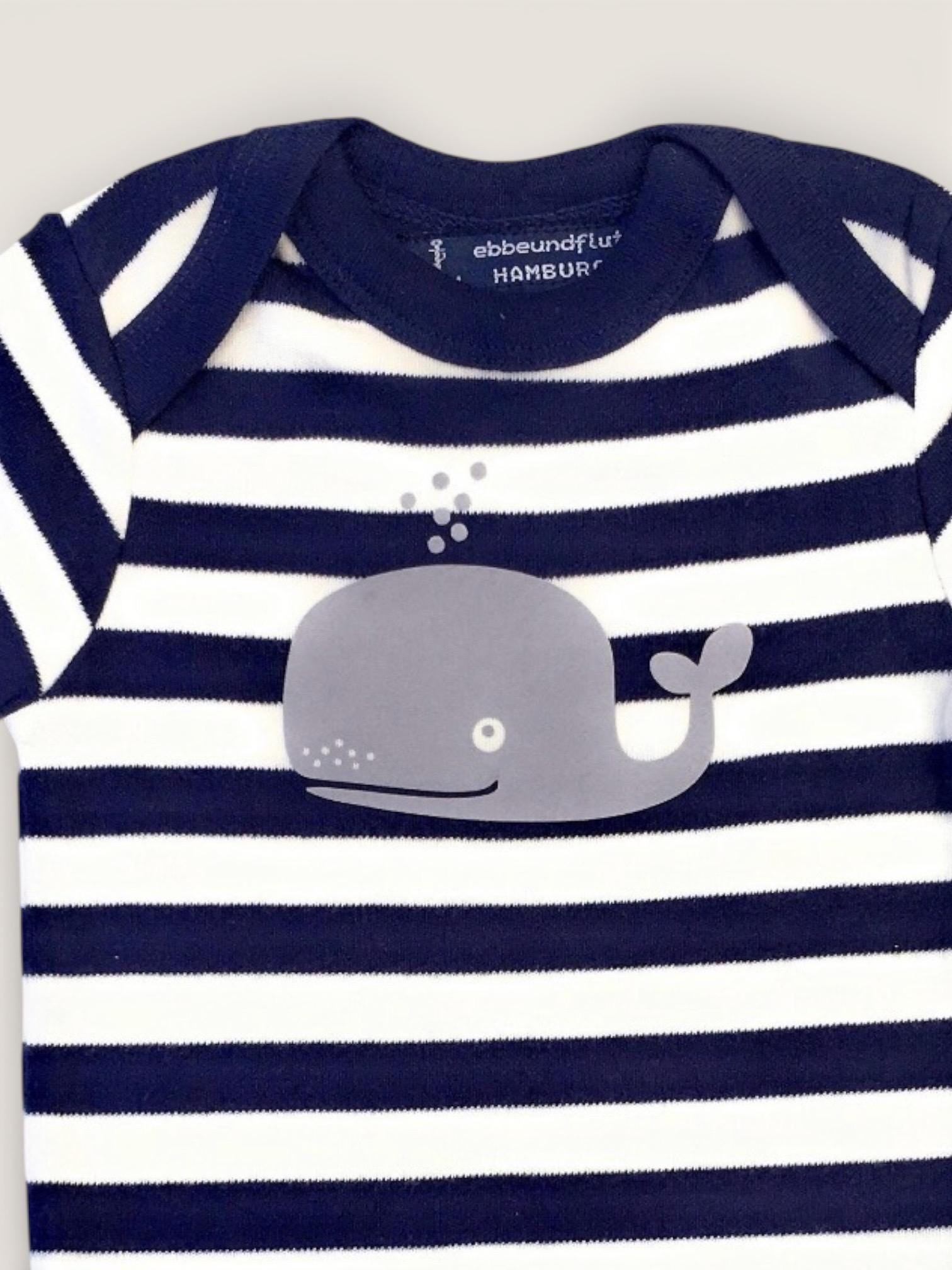 Baby bodysuit with whale design - Fair Trade & Organic - blue and white, Hamburg Gifts, baby gift for birth, maritime baby bodysuit with whale