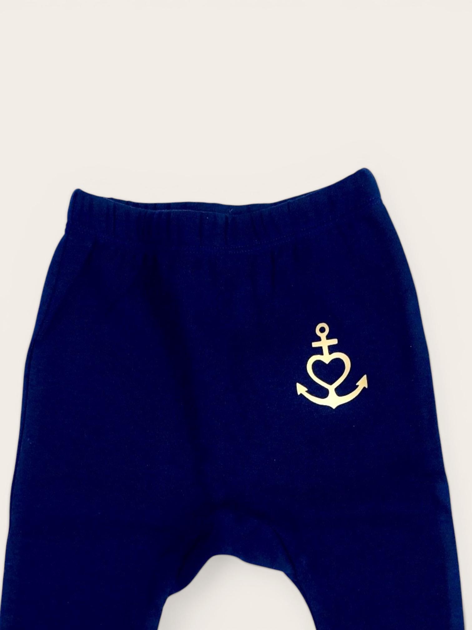 ebb and flow baby pants "Anchor with Heart" in blue and gold - Baby gift for birth, faith, love, hope, heart and anchor.