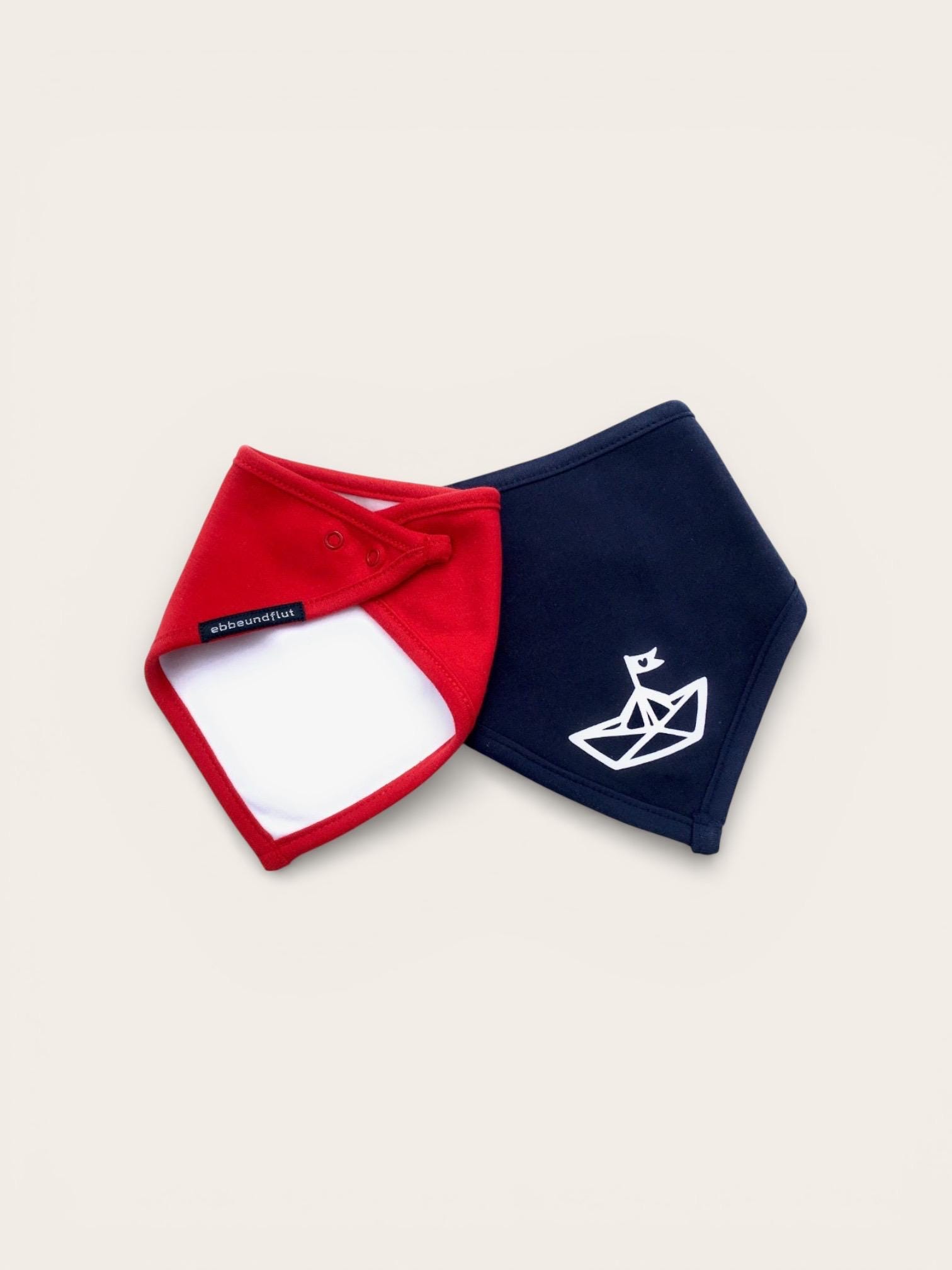Baby bandanas "Paper Boat" set - Fair Trade & Organic - double-layered bandana with snap fastener, 2-piece baby set, paper boat design, ebbe und flut®
