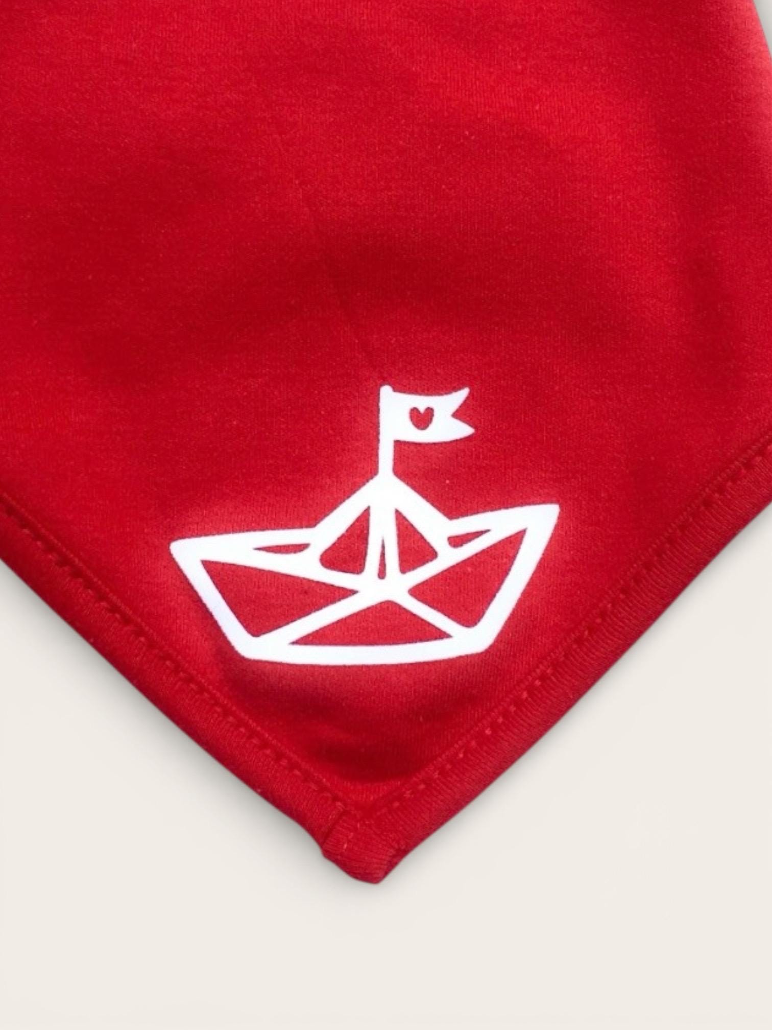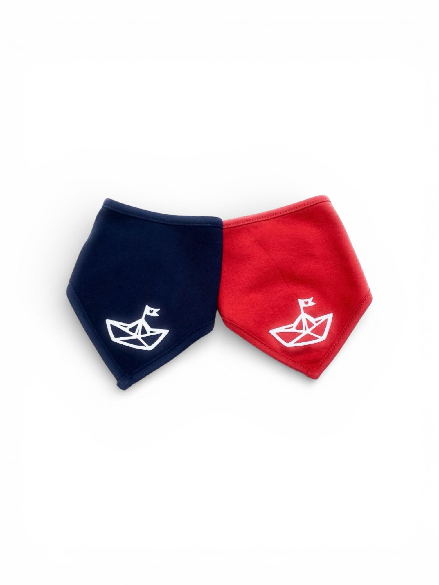 Two beautiful baby scarves "Paper Boats" in a set of 2! One scarf each in dark blue and red from our FAIR TRADE HAMBURG collection.