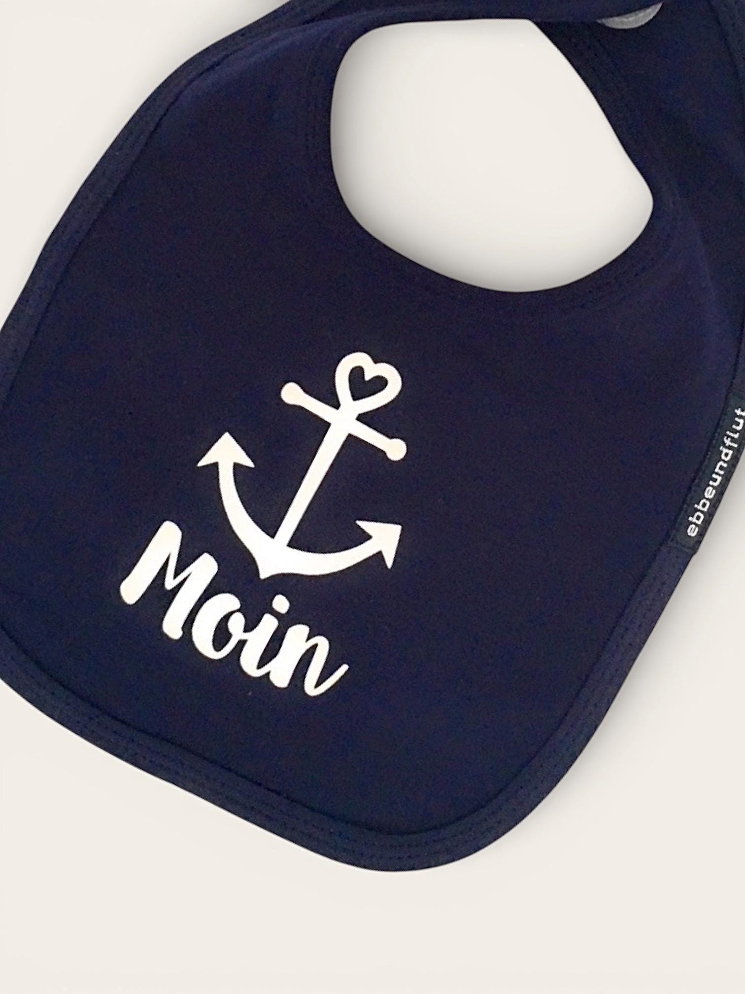 Baby bib with anchor design in dark blue with Velcro closure - Fair Trade & Organic - Moin, anchor bib, baby gift, ebb and flow